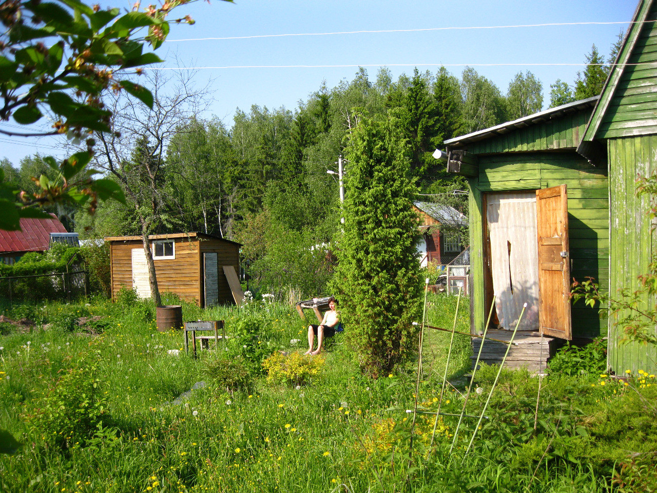 Летом работает магазин. Вокруг грибной лес.