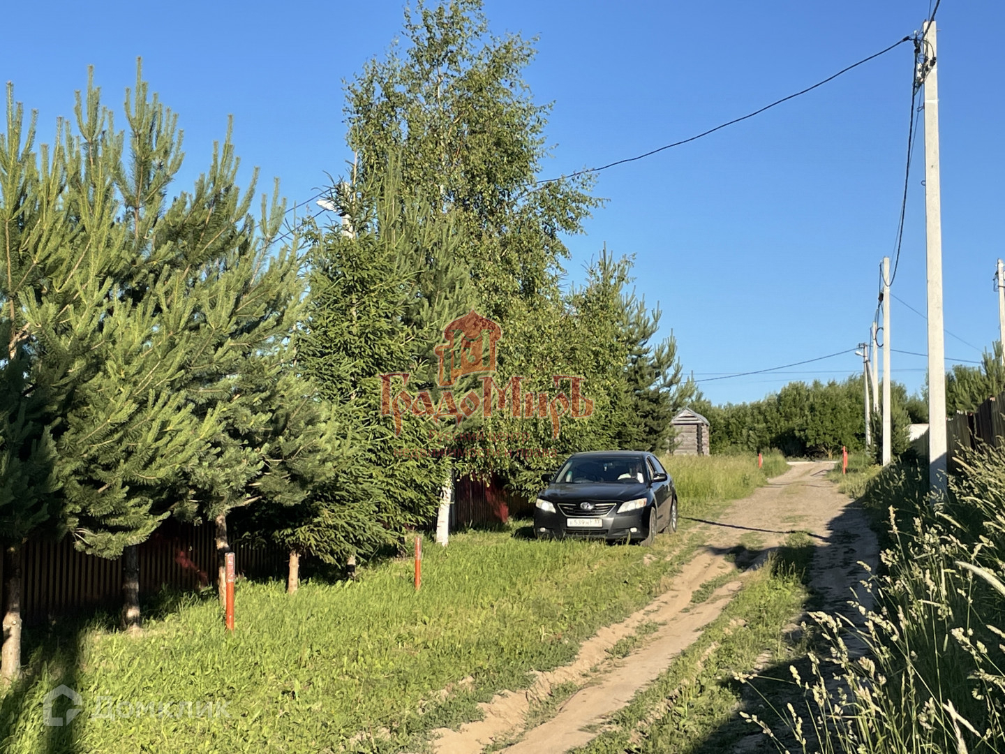 Участок, ровный, правильной формы, частично огорожен металлопрофилем, имеются въездные ворота, на территории предусмотрена  стоянка для автомобиля.