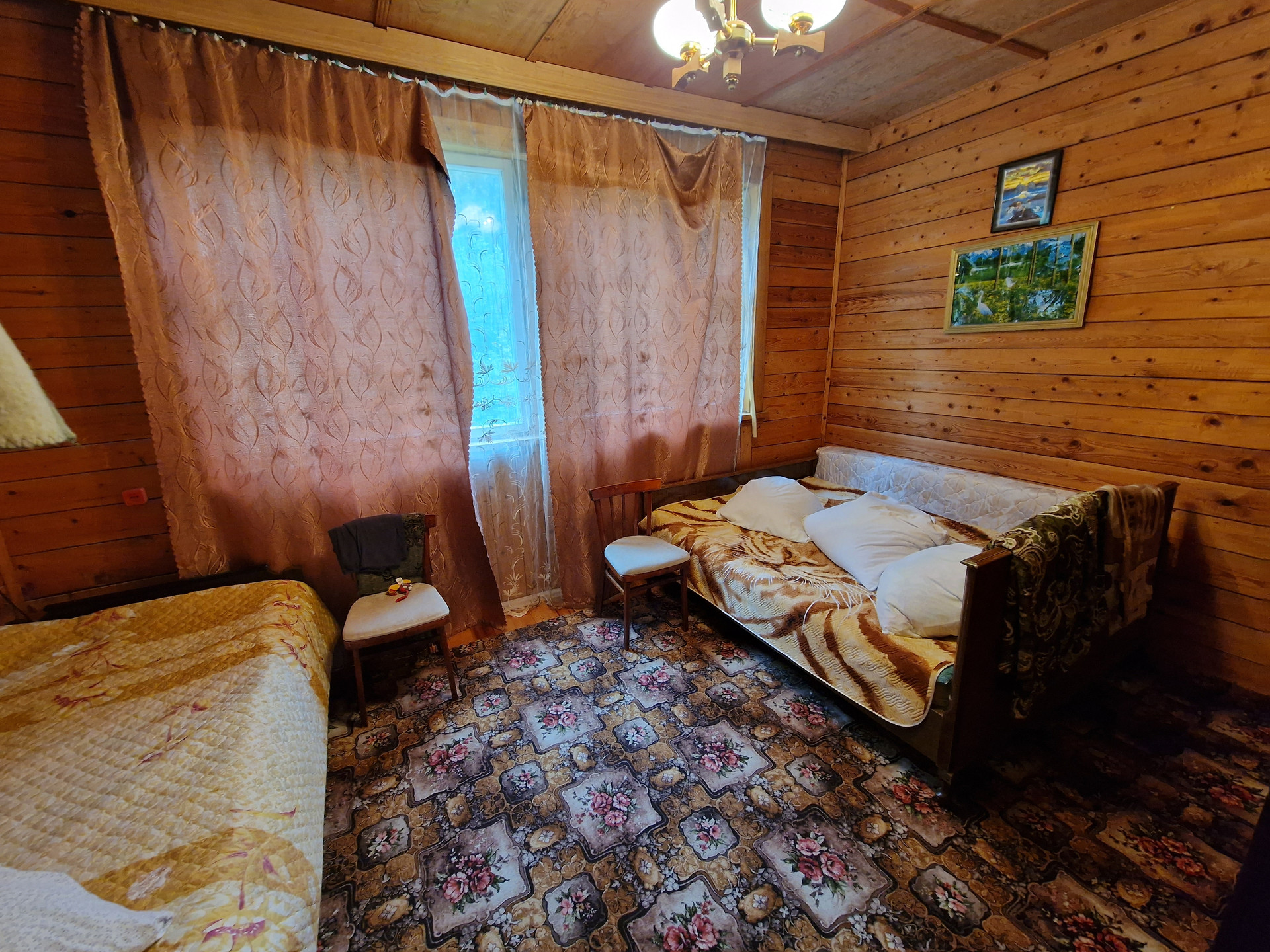 2 этаж(бревно): кухня 20 кв.м, гостиная 23 кв.м, две спальни по 10 кв.м, h- 2,6м;