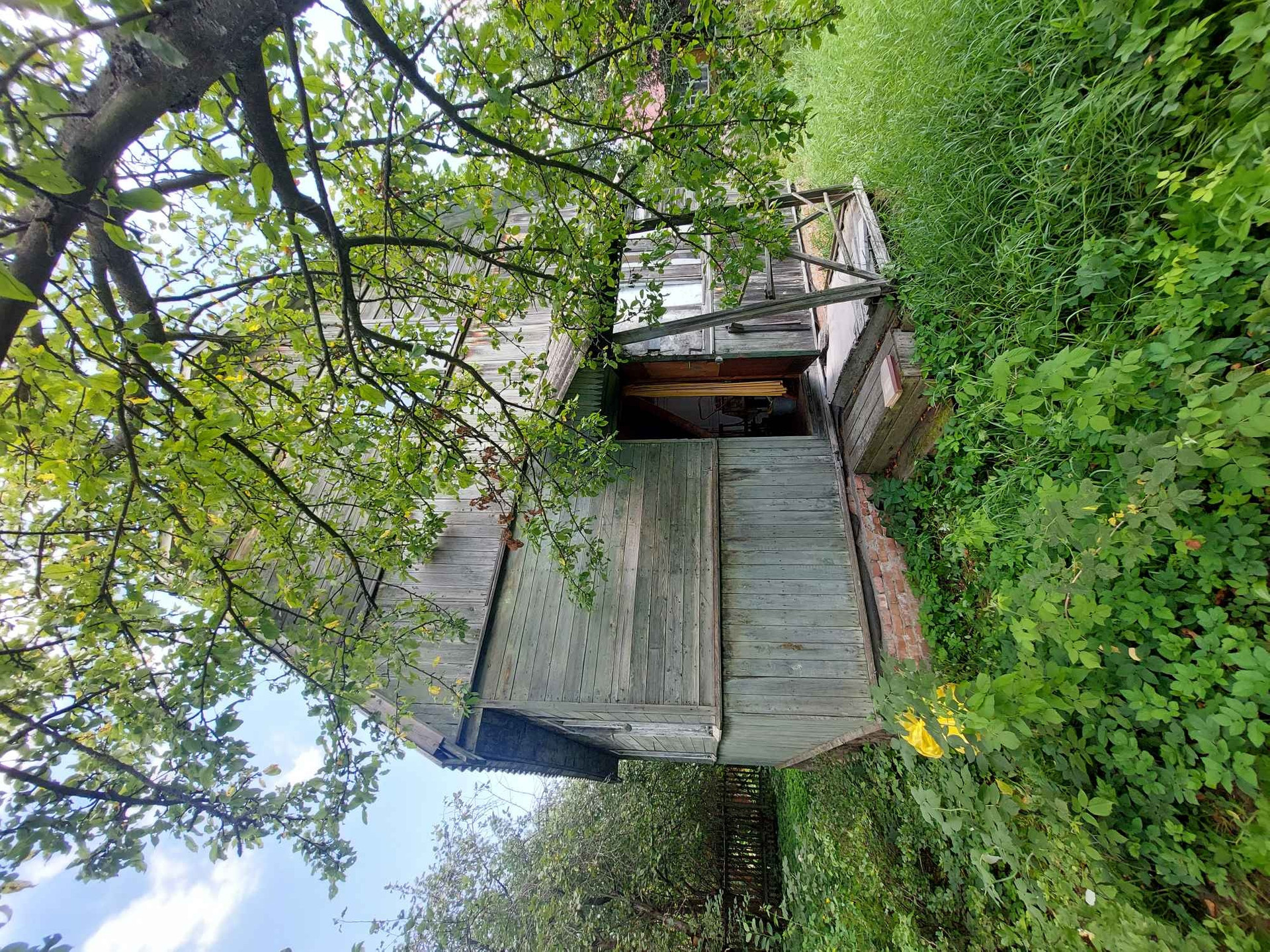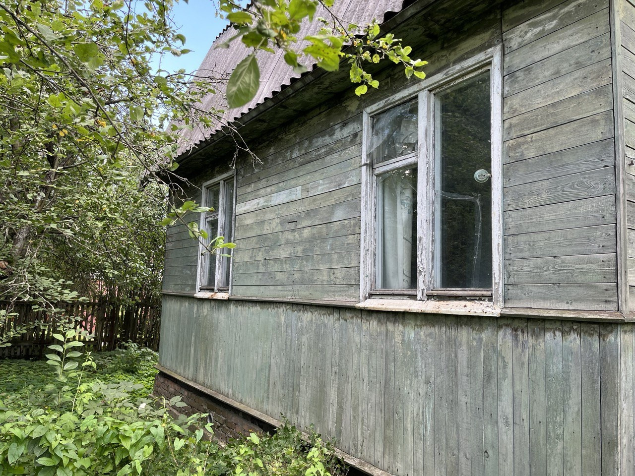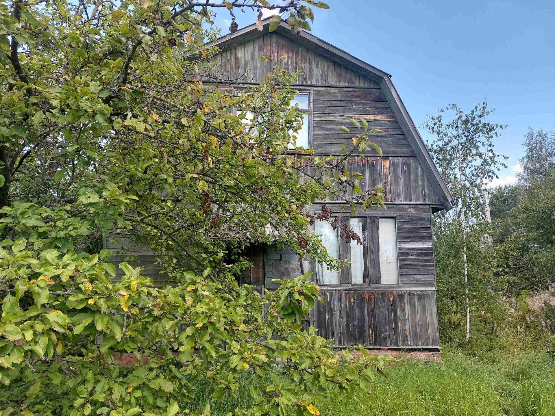 Двухэтажный каркасно-щитовой дом на 3 спальни, общей площадью 50м2. Фундамент ленточный с кирпичным цоколем. На первом этаже находятся небольшая кухня с газовой плитой (используется газовый баллон), ванная комната (без туалета), 2 изолированные комнаты. На втором этаже 1 изолированная комната и 2 кладовых. В дом проведено электричество, летний водопровод (возможно трубы требуют замены). Дом требует ремонта.