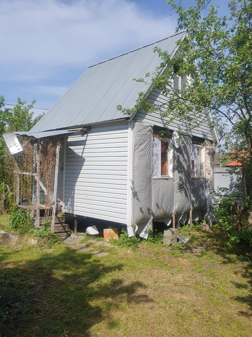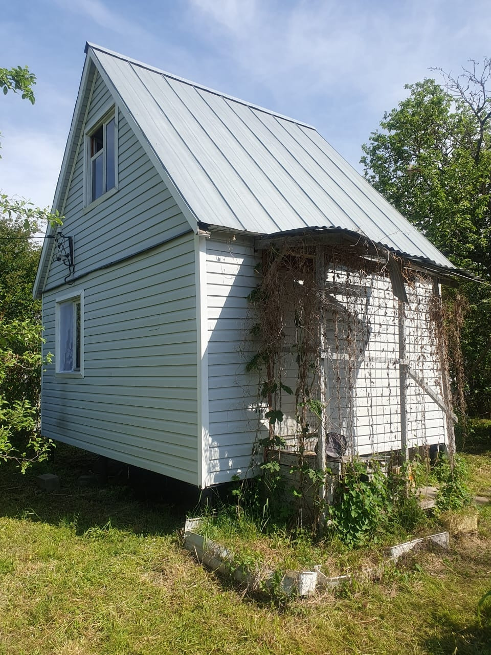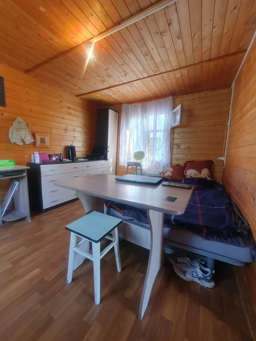 Деревянный Дом с мансардой на  сваях, первый этаж утеплен полностью,  пол линолеум,  окна деревянные,  мебель остаётся,  участок высокий,  правильной формы, летний водопровод,  хвойные  кустарники,  беседка, в дальнейшем снт будет  газифицированное, границы земельного участка установлены,  в снт озеро, до жд ст Храпуново 20 мин . От  Москвы (1 час на электричке, федеральная трасса М12). До ст. Храпунова 5 мин на машине. Дорога до СНТ асфальтированная, от ворот СНТ всего 3 участка, установлены камеры видеонаблюдения. В СНТ есть продуктовый магазин, детская площадка.