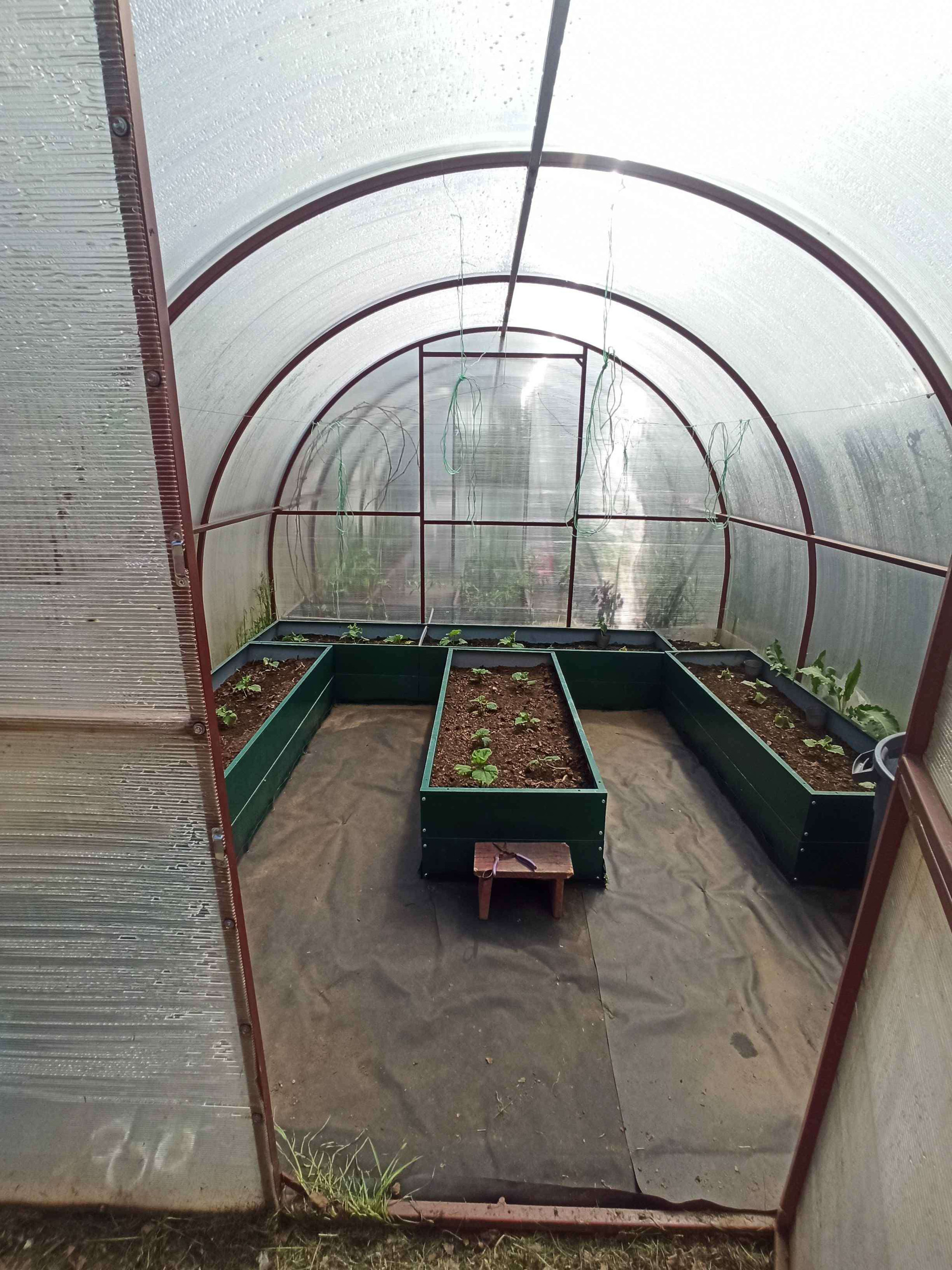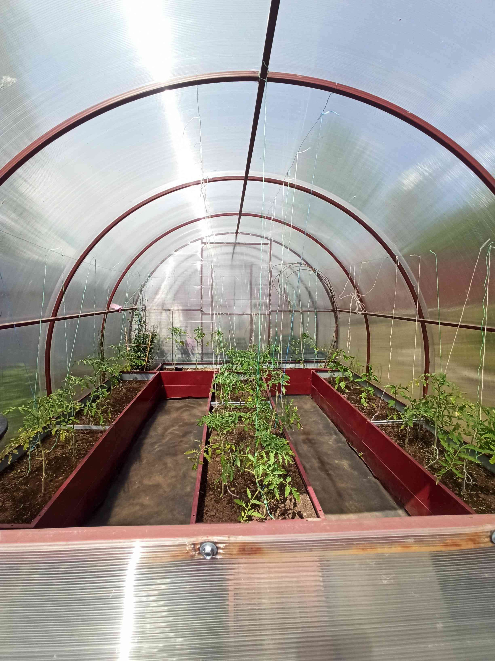 Теплица на ленточном фундаменте ( посажены помидоры , огурцы) парник с кабачками.