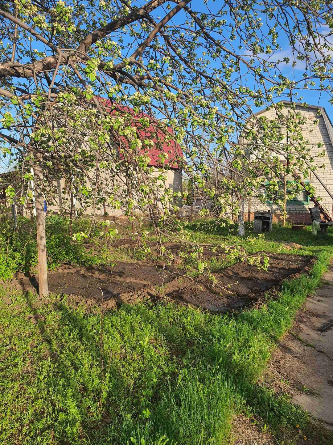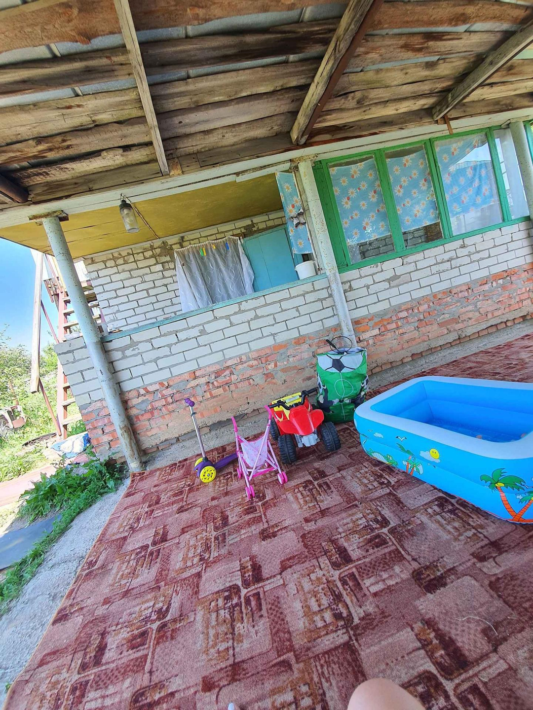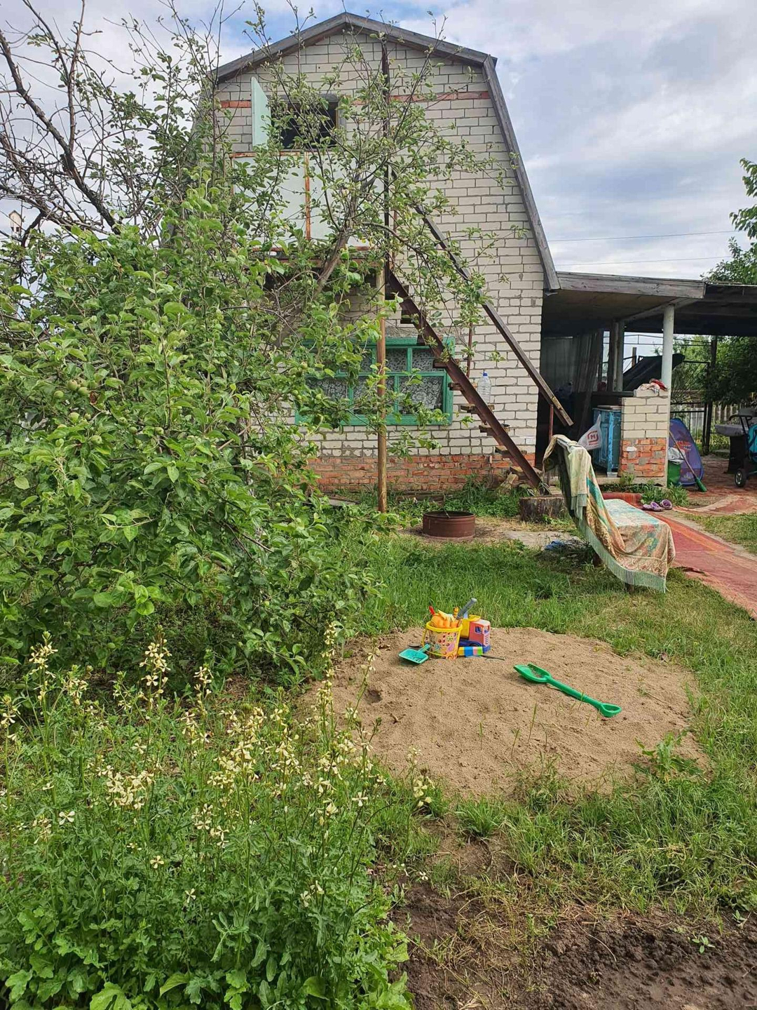 Двух этажный домик. Место под парковку с навесом. Своя скважина. ( полив в любое время). Так же есть хозблок, летний душ с подогревом, недостроенная баня и новая печь. На улицы большая бочка для воды.