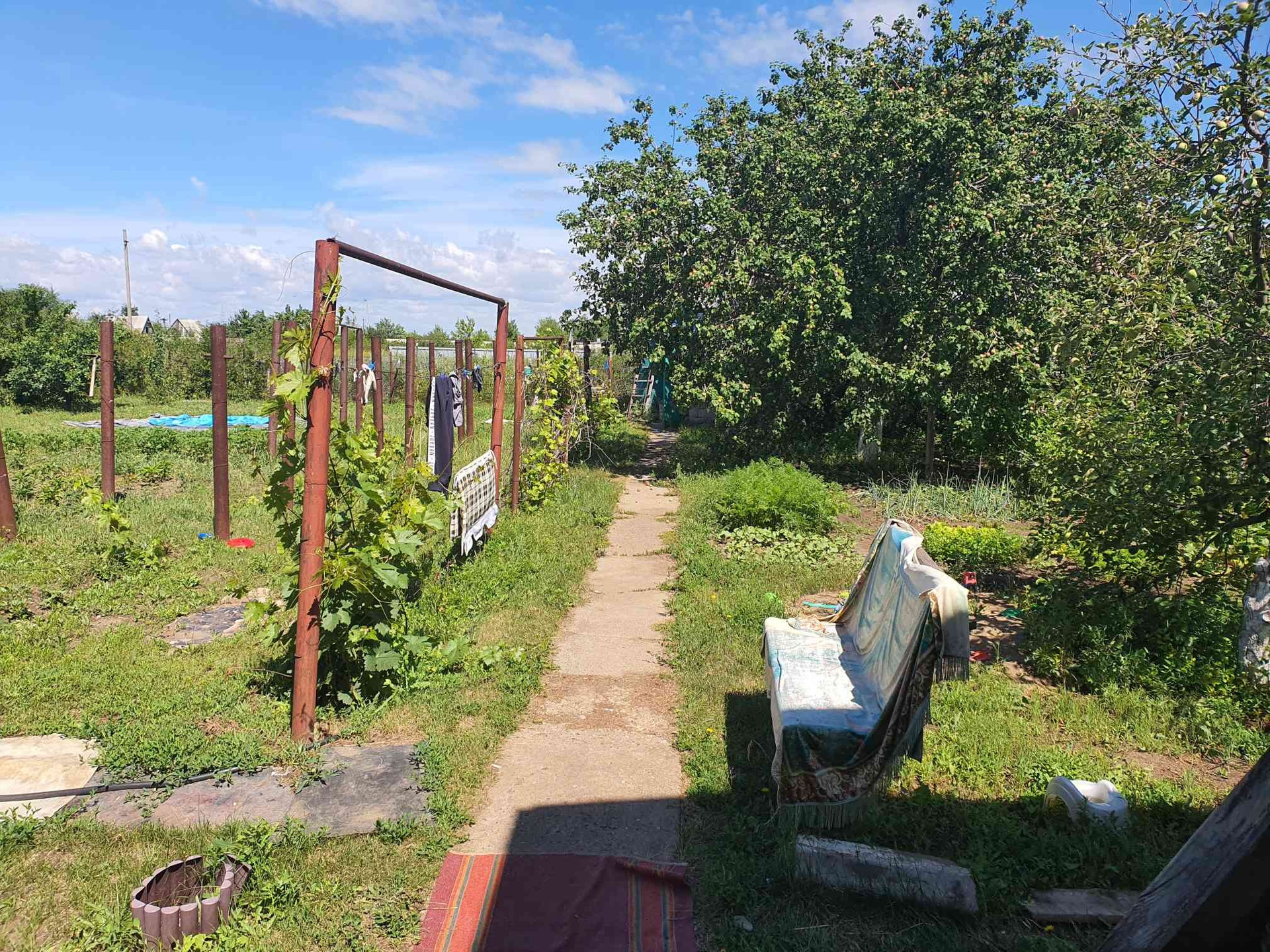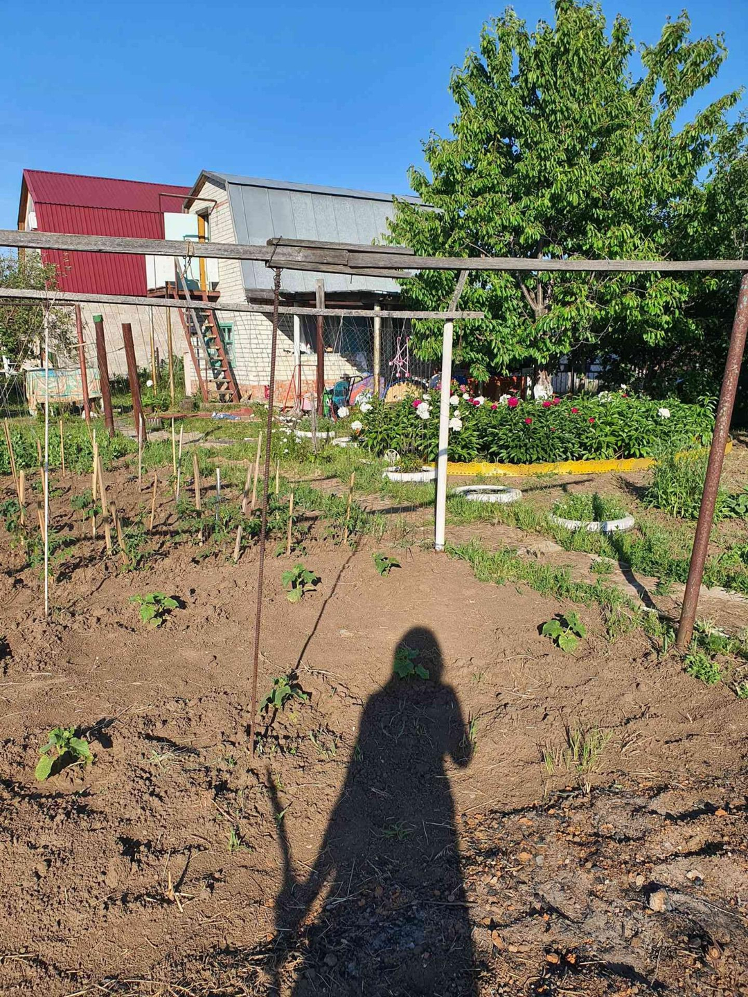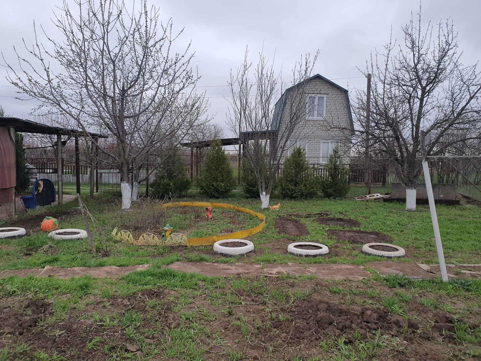 Двух этажный домик. Место под парковку с навесом. Своя скважина. ( полив в любое время). Так же есть хозблок, летний душ с подогревом, недостроенная баня и новая печь. На улицы большая бочка для воды.