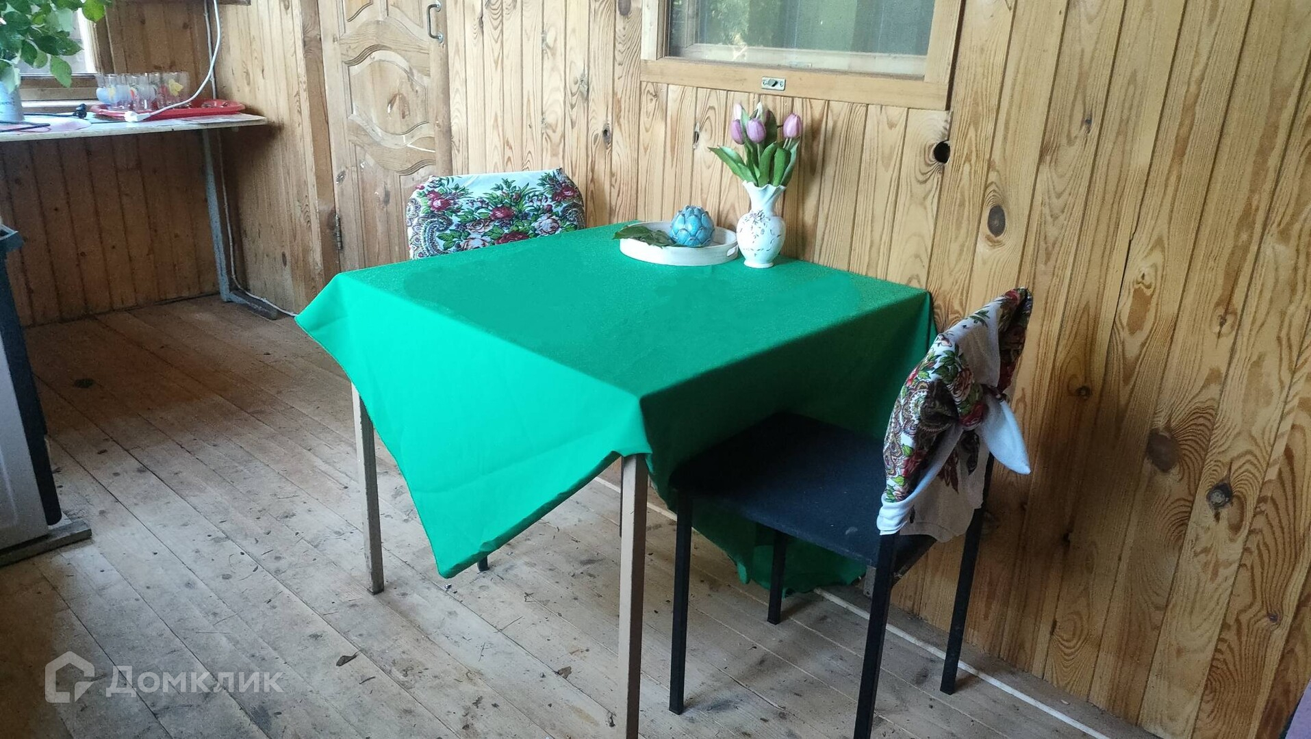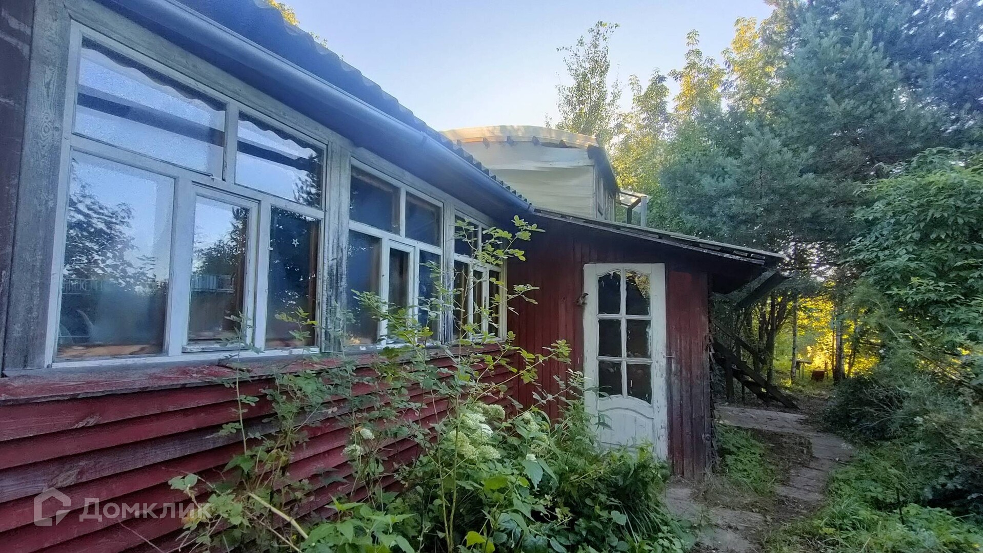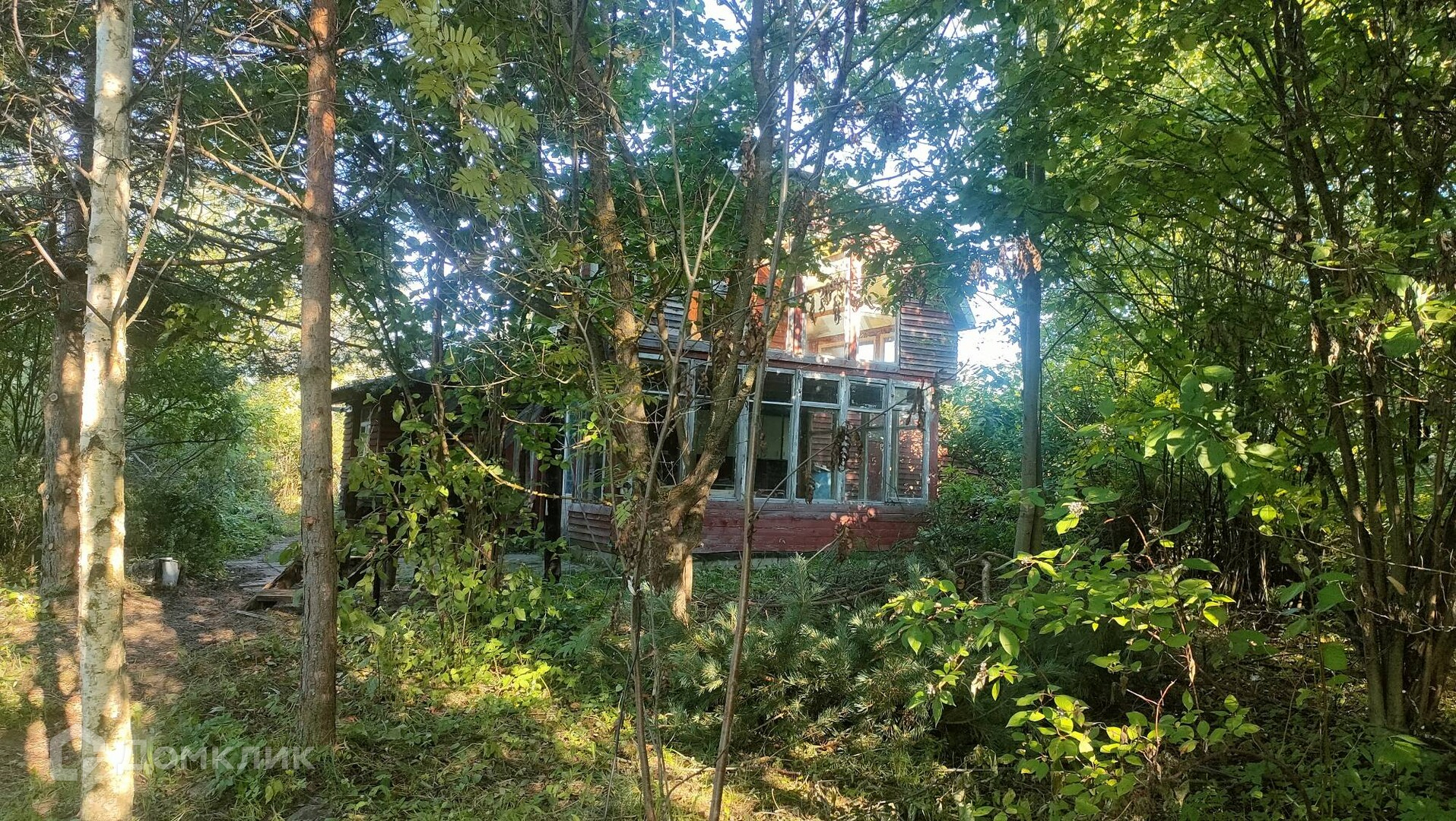 На участке расположен теплый каркасный дом с печью, баня, дровник, теплица. К дому пристроена летняя кухня, а над ней стеклянная пристройка, типа зимнего сада.