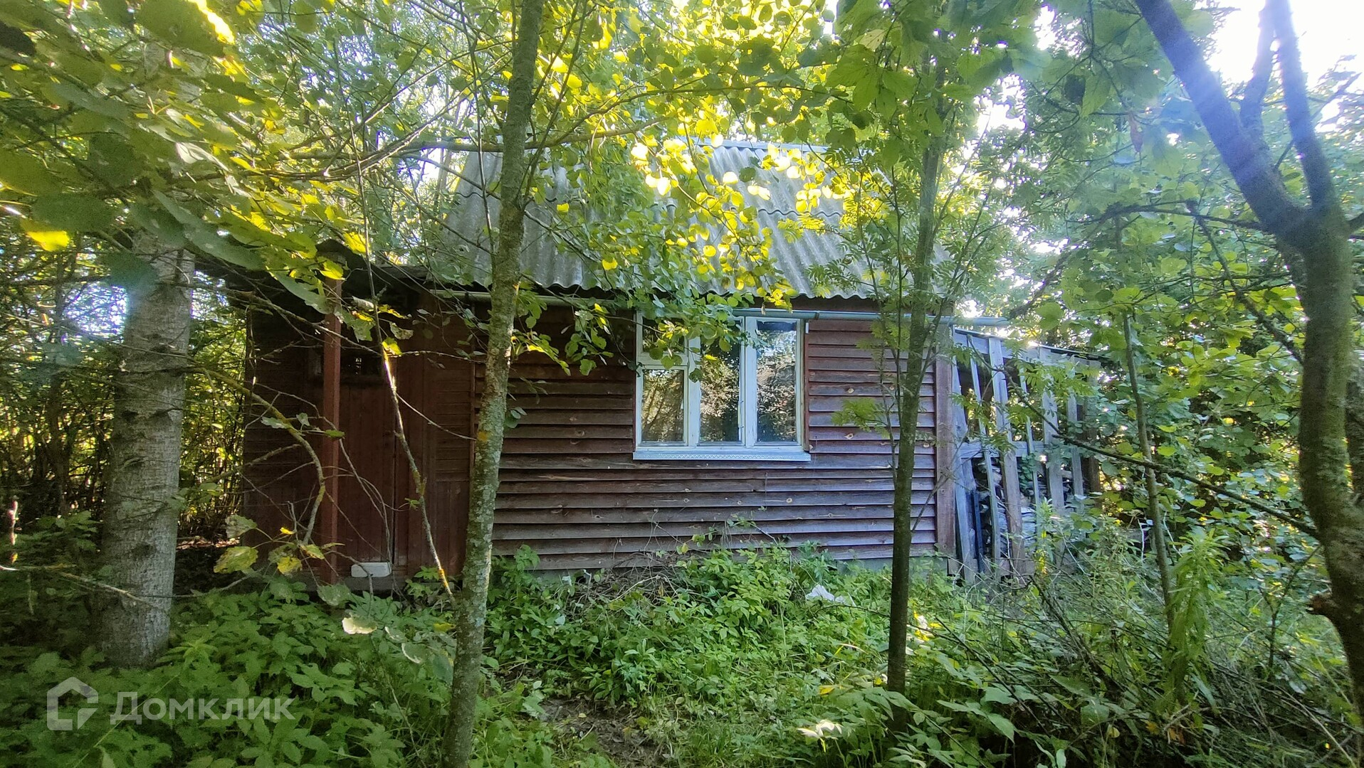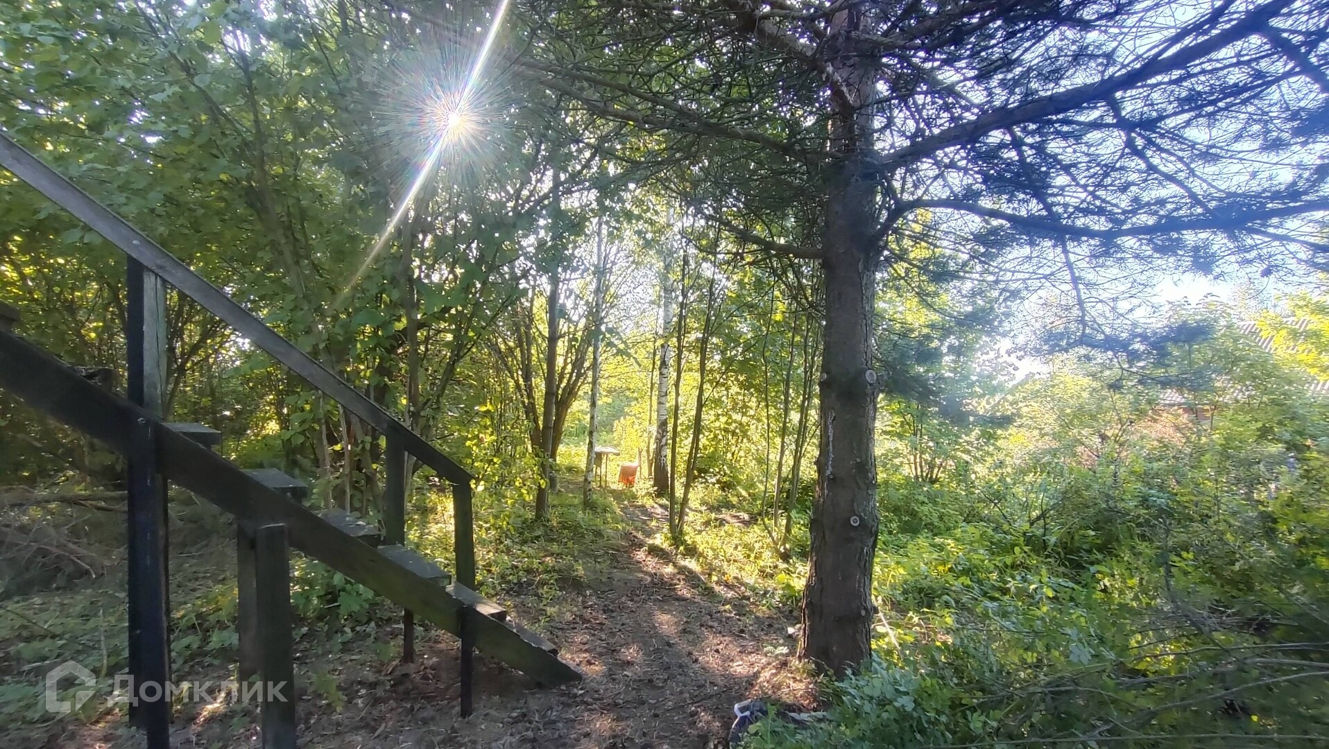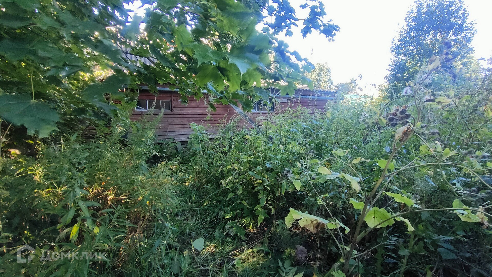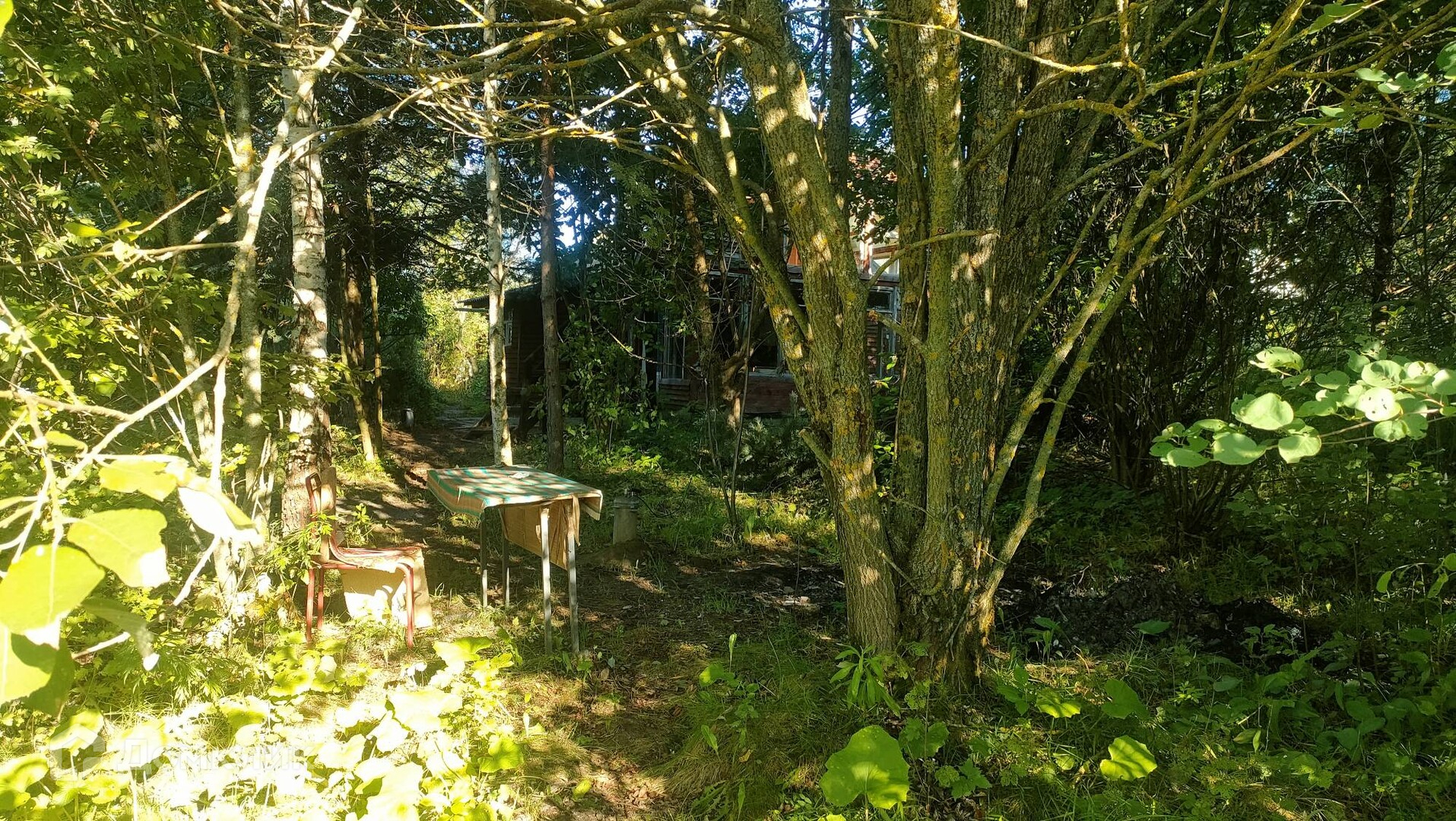 Участок заросший, много деревьев и кустарников.