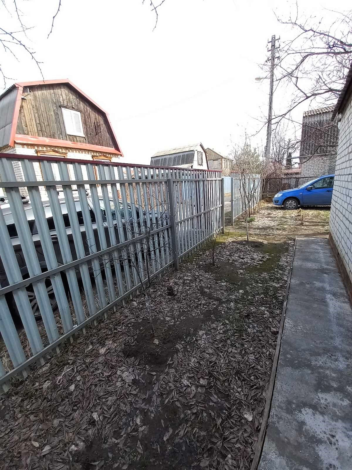 Крытая парковка а/м. С фасада забор из евро штакетника.