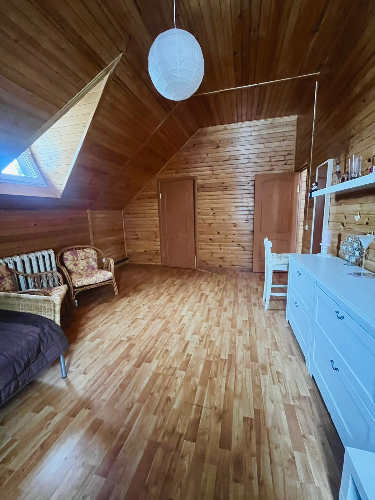 Второй этаж - просторный холл, две спальни, санузел с душевой кабиной.
