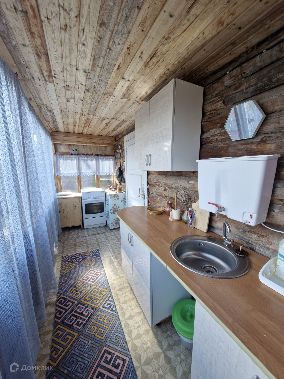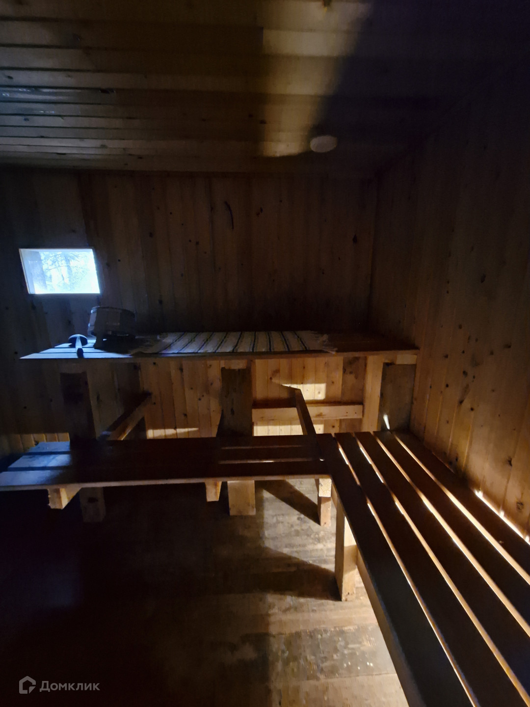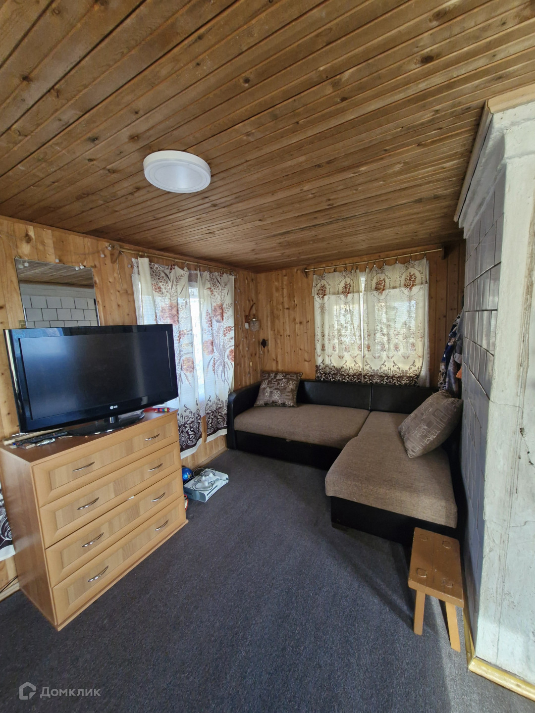 Двухэтажный дом из бревна, обшит изнутри вагонкой.