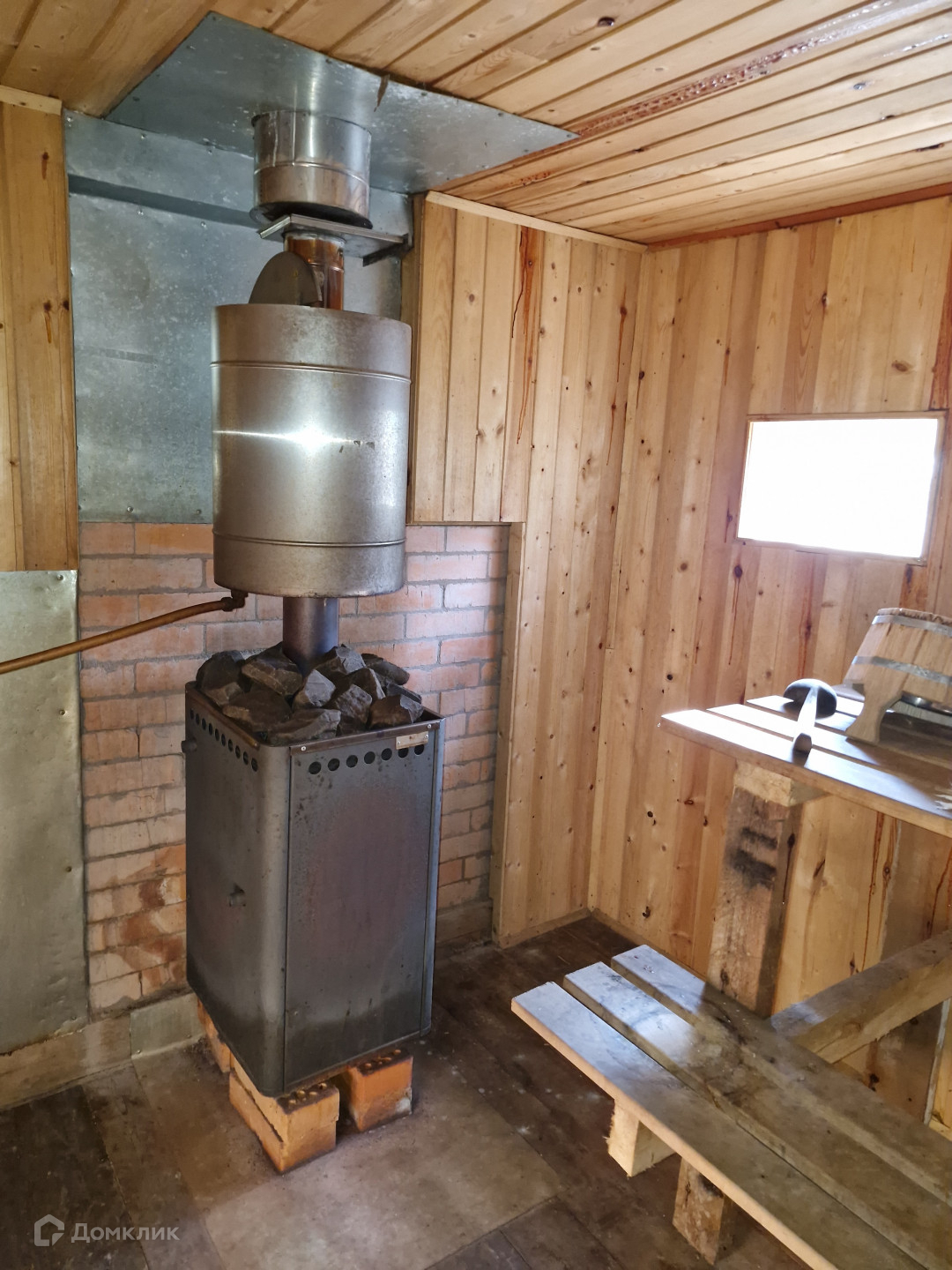 Баня из бруса с жилой комнатой, просторной парилкой и бойлером.
