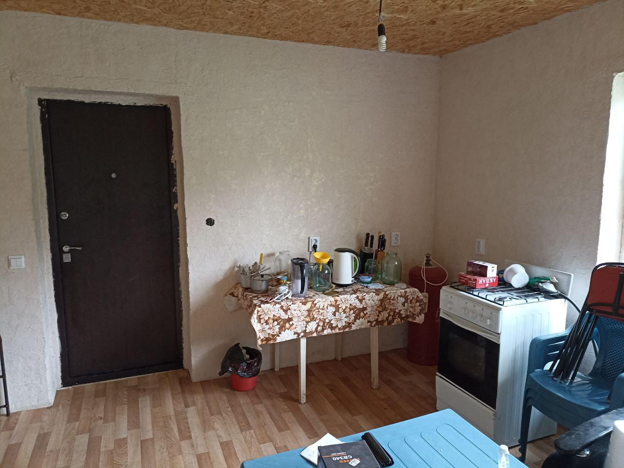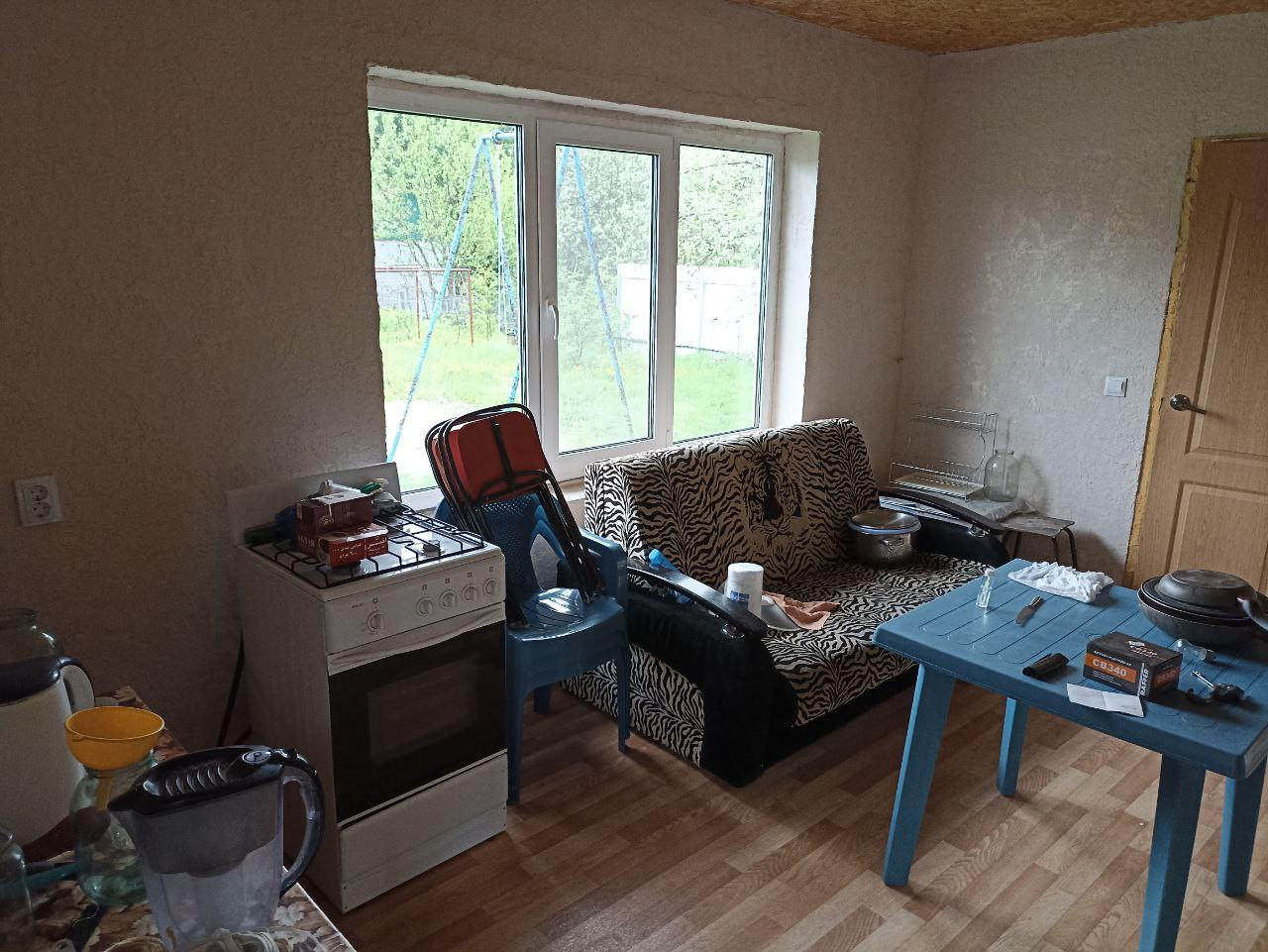 Двухэтажный дом. Удобства есть и в доме, и на улице. Вода на участке только в сезон. В дом проведена хол/гор вода. На первом этаже большая кухня + санузел, небольшой коридор и 2 изолированные комнаты. На втором этаже большая комната со встроенной мебелью и шкафами. Вход на второй этаж с веранды. Есть погреб. Оставляем 2 холодильника, стиральную машину и газовую плиту.