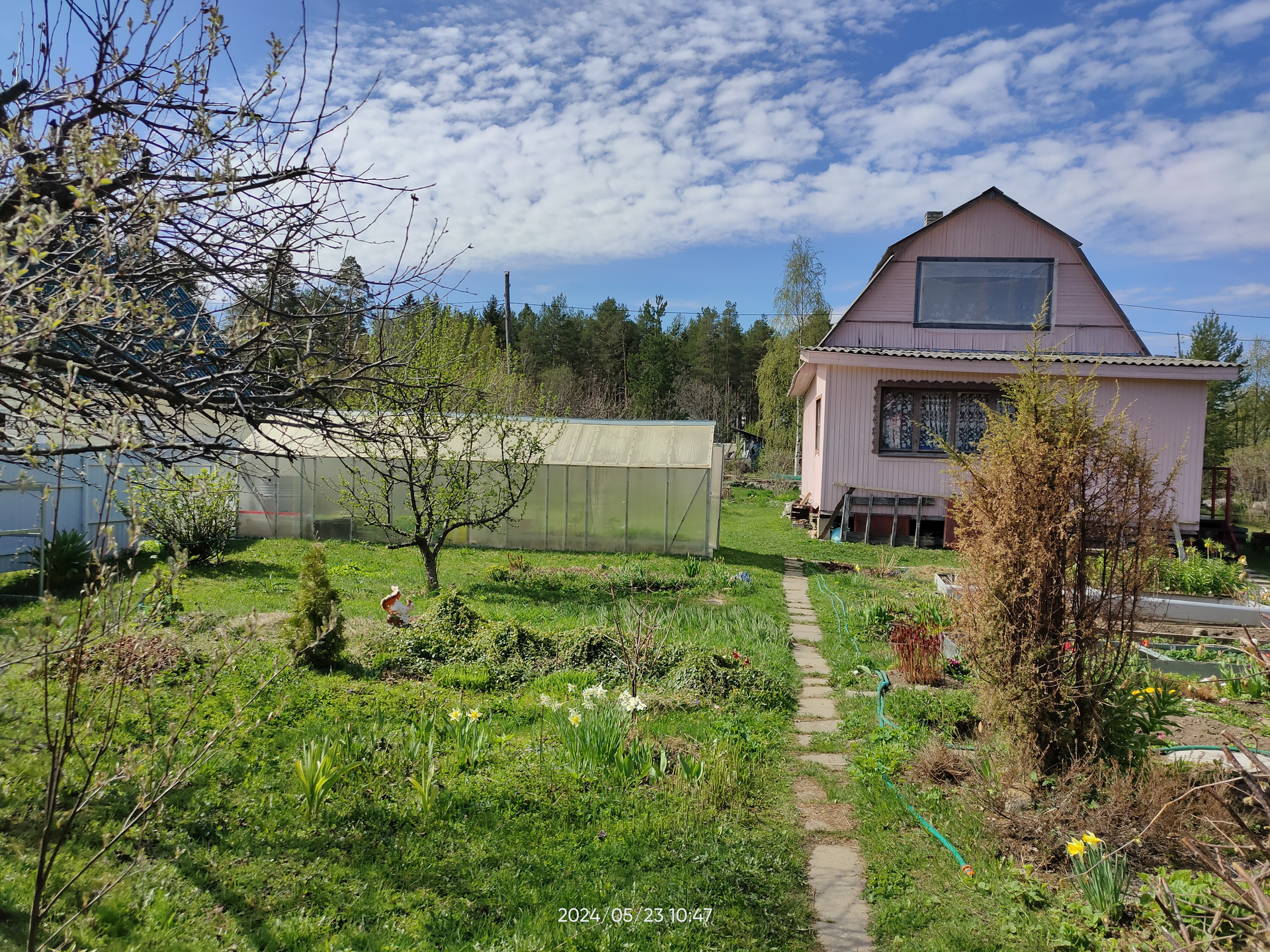 Земельный участок двухконтурный: кадастровый номер 10:20:0020701:75 - площадь 856 кв.м. (реальный размер около 1000 кв.м), на участке расположен садовый дом с хозяйственными постройками: баня из бруса 3х5 кв.м., сарай 3х6 кв.м. (год постройки 2023), теплицы из поликарбоната, проточный пруд. Участок сухой, ровный, разработан: яблони, слива, кусты смородины, малина, клубника, цветники. Большие зоны для отдыха. Второй участок: кадастровый номер 10:20:0020701:178 - площадь 601 кв.м., на участке организована автостоянка на два автомобиля, отсыпана щебнем, ограждена забором из металлического профиля, установлены основные и дополнительные ворота. Участок ровный, сухой. Категория земель: земли сельскохозяйственного назначения, разрешенное использование: для садоводства.