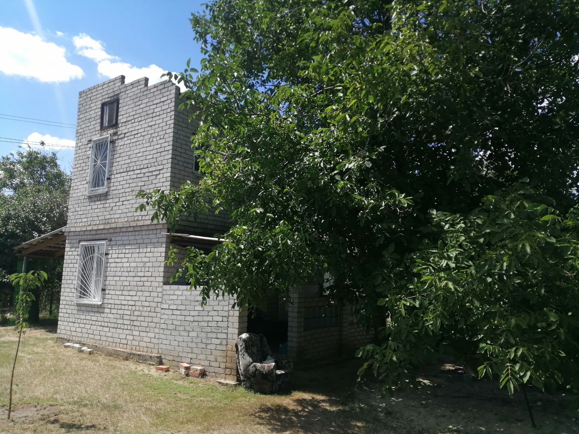 На участке есть две груши, слива, вишня, виноград, шелковица (тутовник), большой орех - затеняющий дом, малина, смородина, крыжовник, а также посажены молодые деревья (яблони, абрикос, черешня).