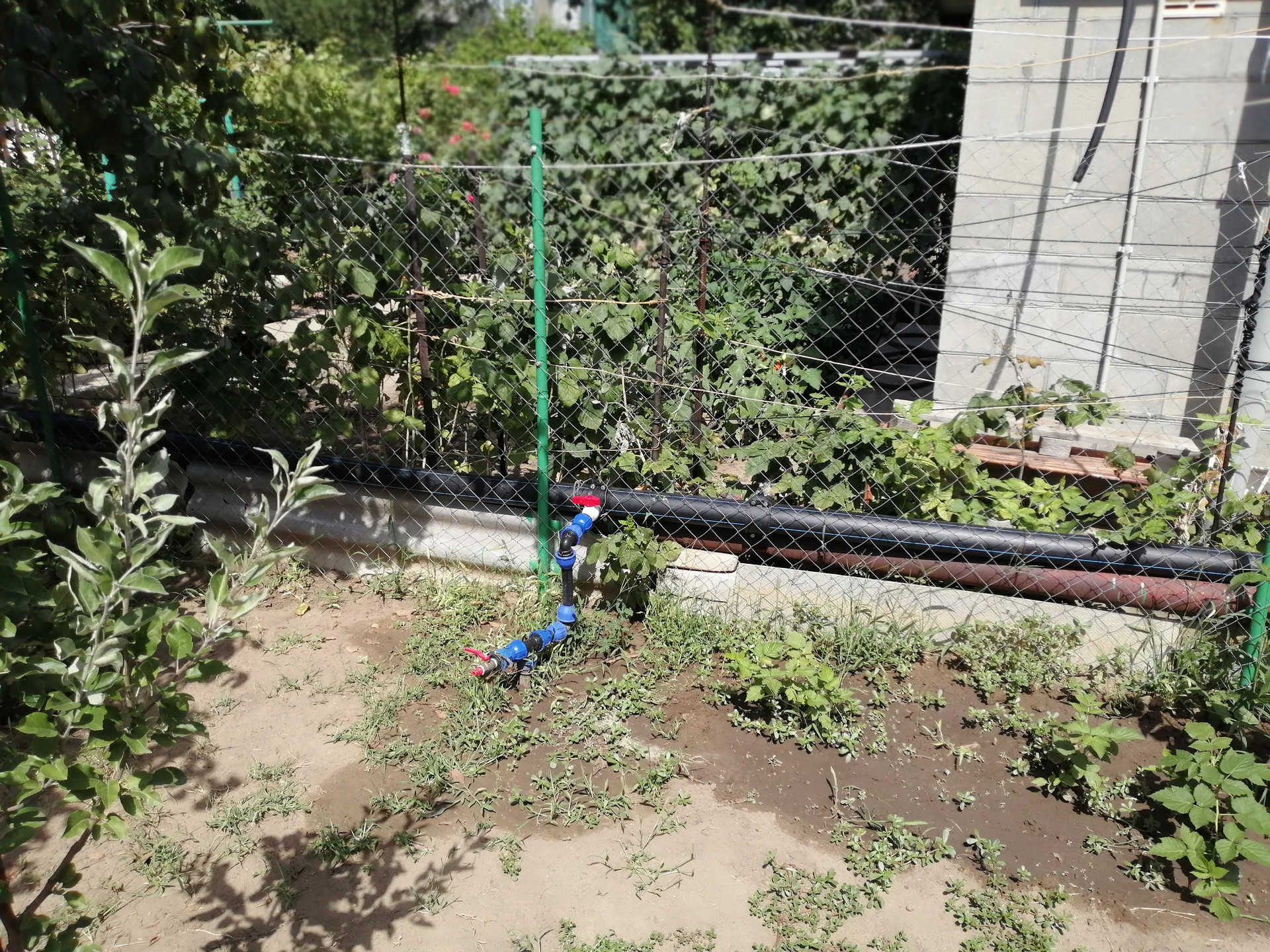 На участке есть хоз. блок состоящий из трех частей (туалет, душ, подсобное помещение). На душе стоит новая пластиковая емкость объемом 200 литров, которой более чем достаточно... К участку подходит новая пластиковая поливная труба. В этом году по участку был проложен новый поливной трубопровод из 32-ой ПНД трубы и убран под землю. Для удобства полива выведены три крана в разных частях участка, что обеспечивает удобный и быстрый полив. Так же смонтирован новый, большой навес под автомобиль (примерно 6*4 м.)