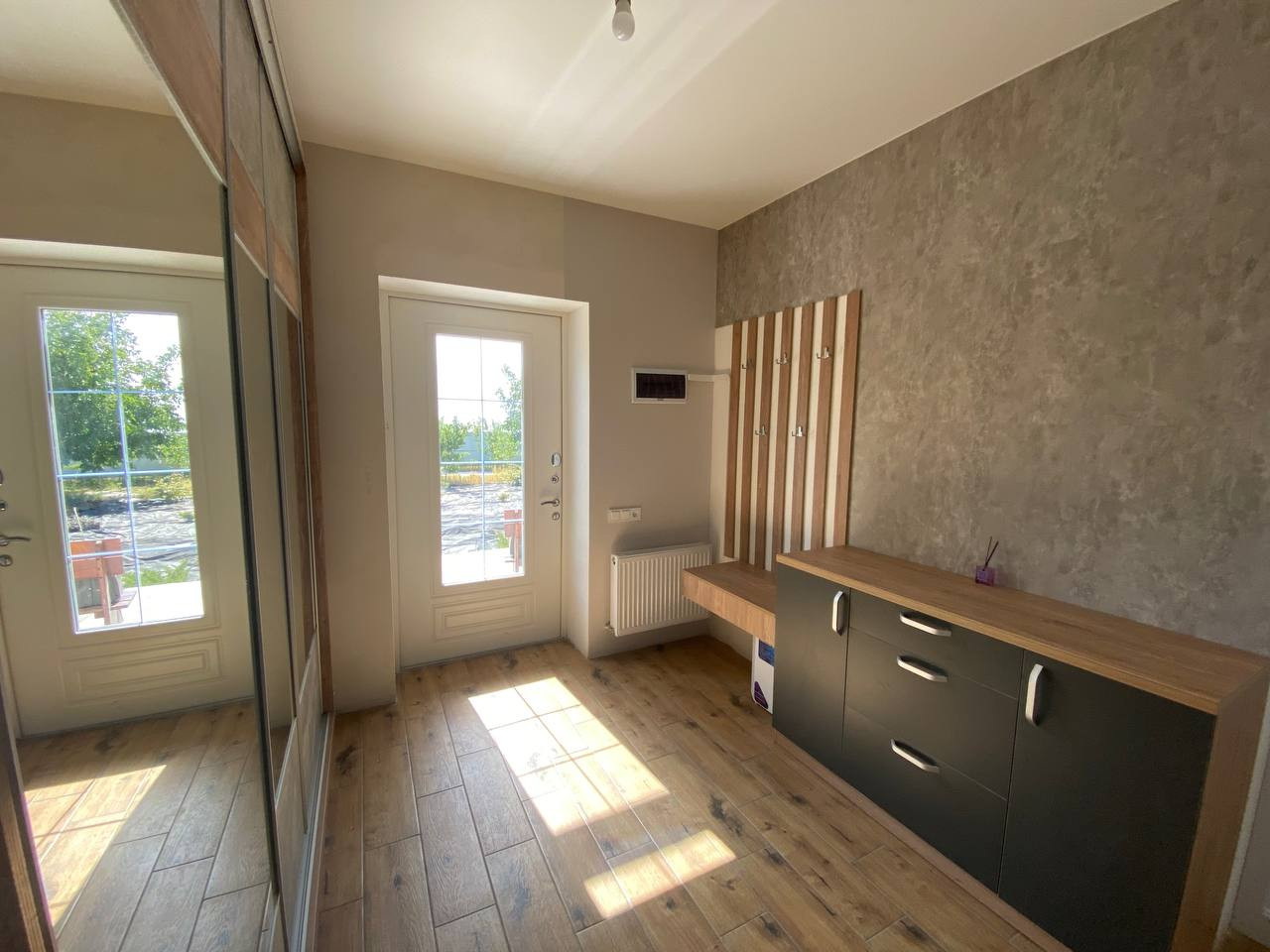 Первое, что бросается в глаза - это дизайнерский ремонт. Все работы были выполнены с использованием качественных материалов и с большим вниманием к деталям. Отделка выполнена в светлых тонах, что создает атмосферу уюта и спокойствия.