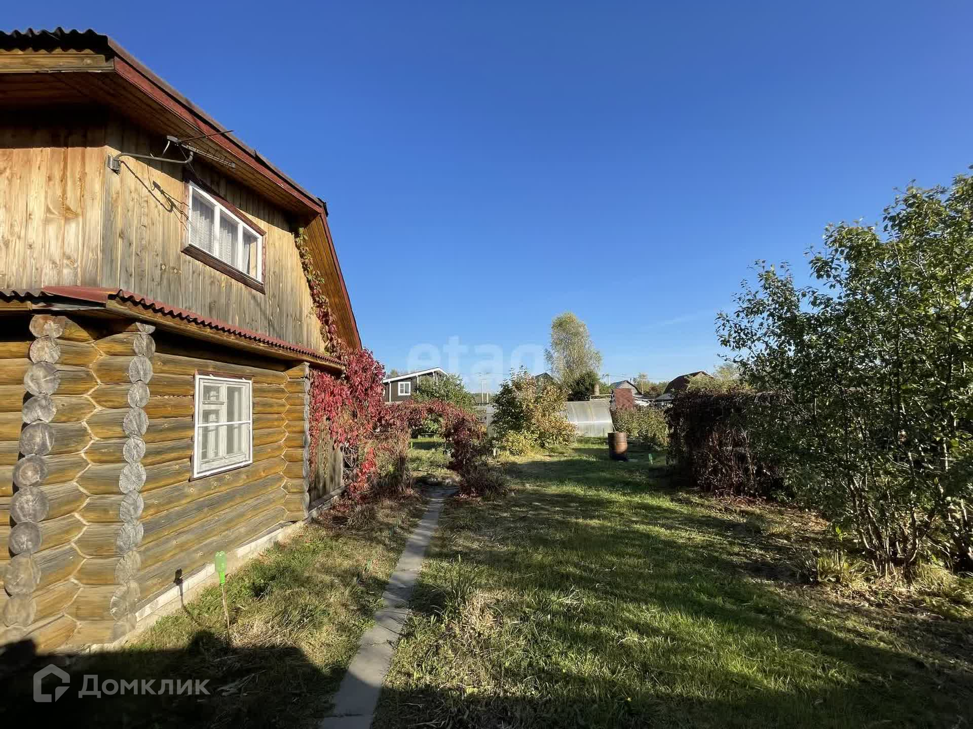 Крепкий и уютный двухэтажный бревенчатый домик площадью 42м2, вся мебель остается что позволит начать отдых уже с первого дня. Электричество в доме, подача газа из баллона, централизованная подача воды для полива