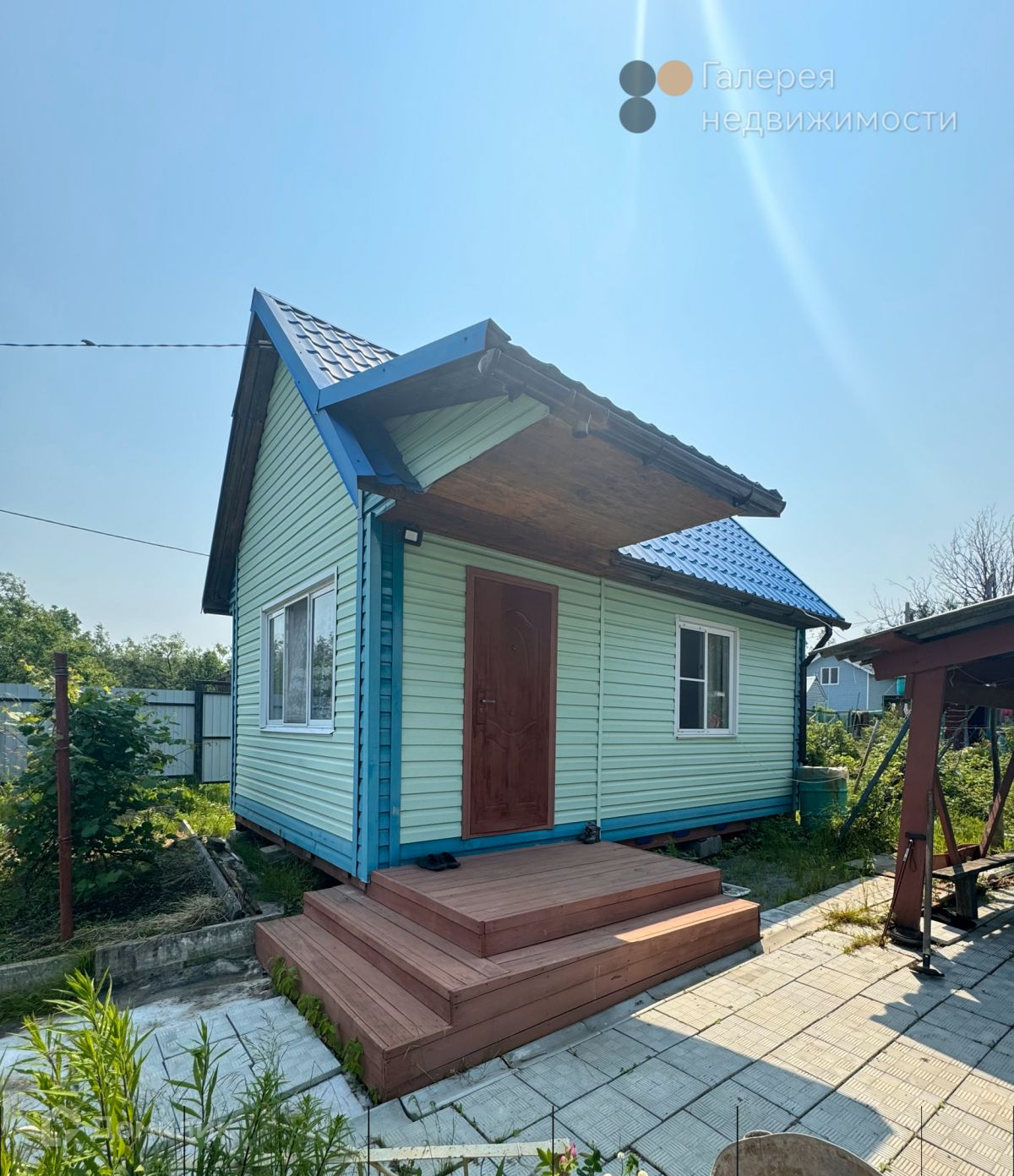 Площадь участка 7,7 соток, правильной квадратной формы. На участке расположен одноэтажный дачный дом из бруса и фанеры, обшитый сайдингом, 2017 года постройки . Дом светлый , ухоженный с двумя комнатами, пластиковые окна. Двор выложен плиткой.