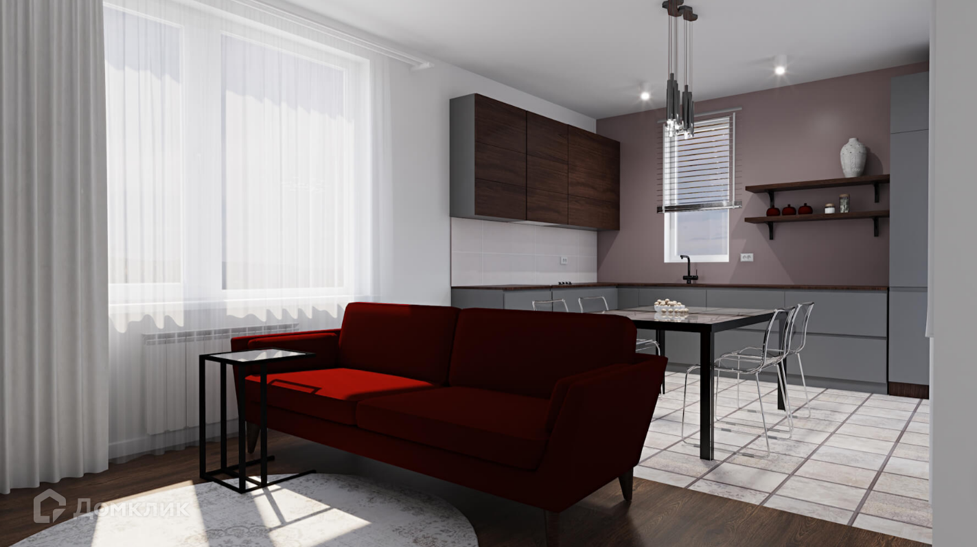 Объединенная кухня и гостиная создают уютное и открытое пространство, где семейные обеды и встречи с друзьями становятся приятной традицией. Из кухни есть выход на террасу, поэтому в теплое время года все сборы перенесутся на свежий воздух. Вы сможете наслаждаться природой, проводя незабываемое время со своими близкими.