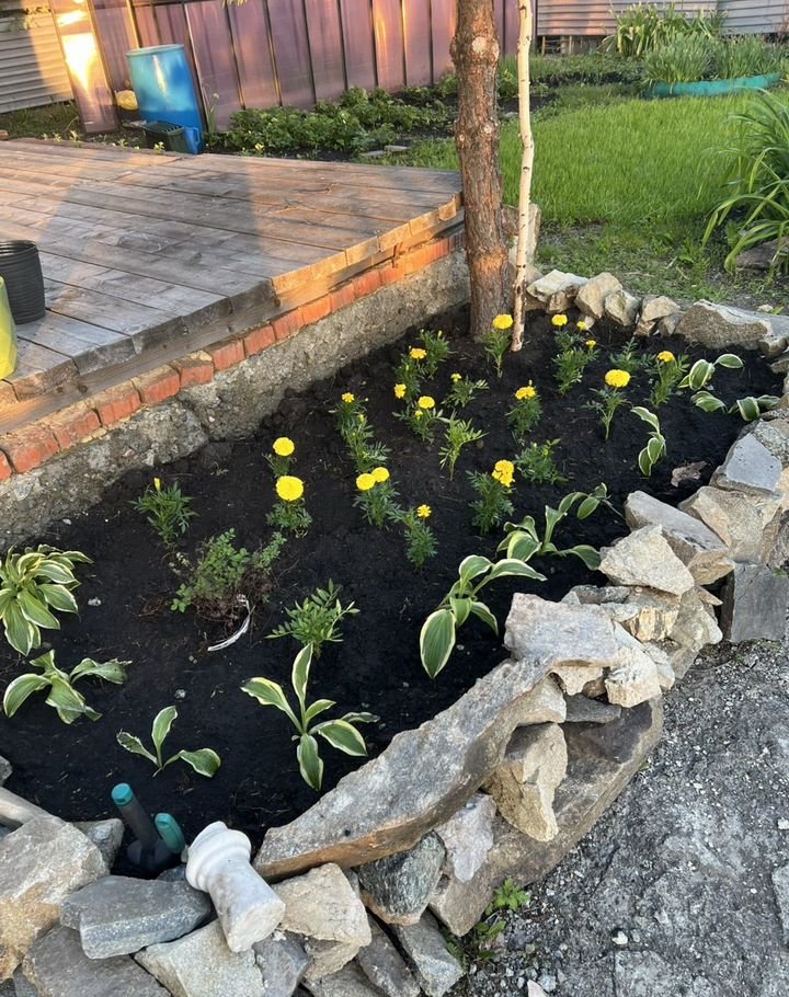 Очень многo пocадок - гoлубaя eль, туи, бeрезa, eли, гоpнaя ель, бaрбaриc, калинa Бaнглaдеш, гортензии, пиoны , ирисы, красивый ухоженный газон.
