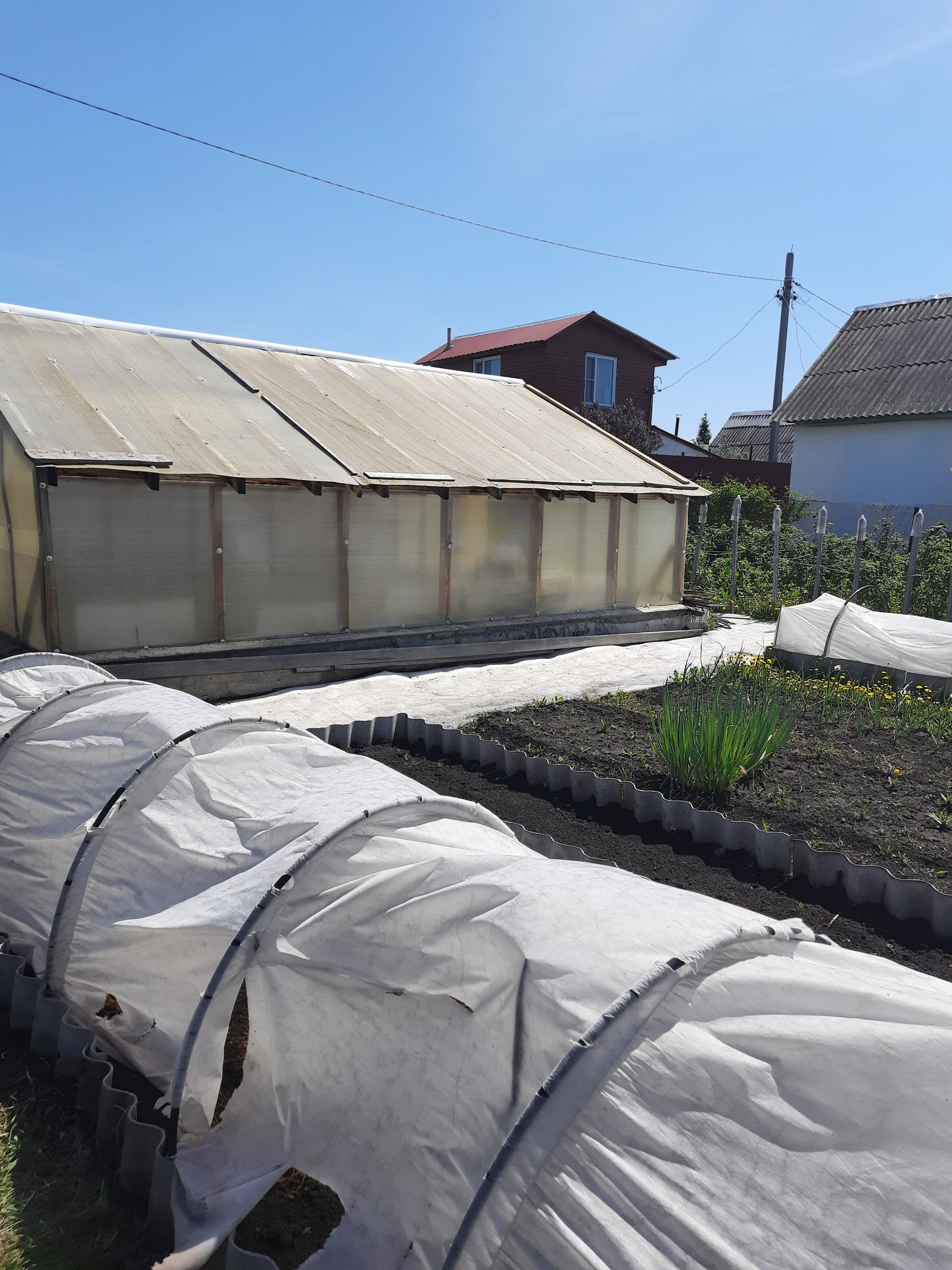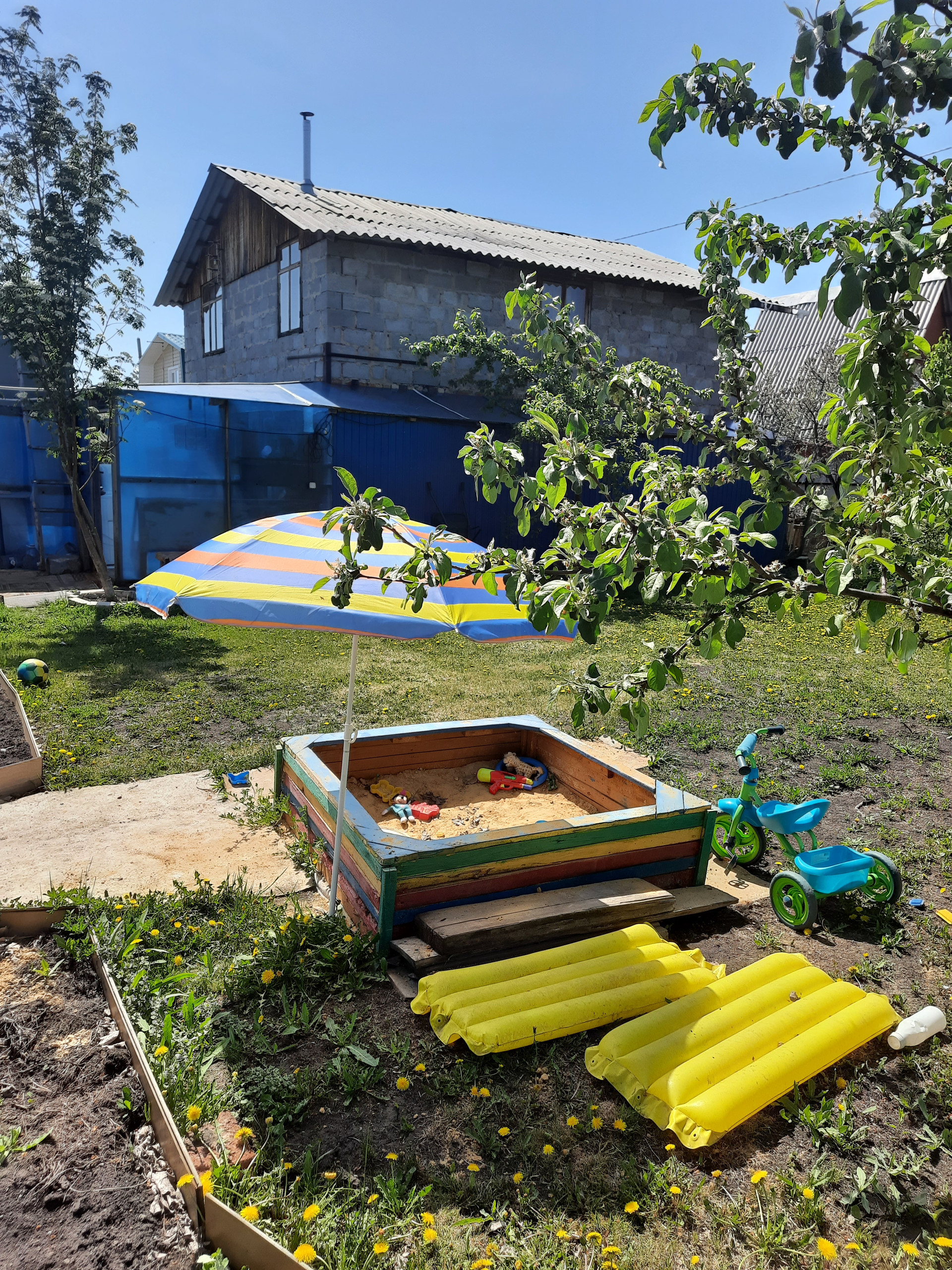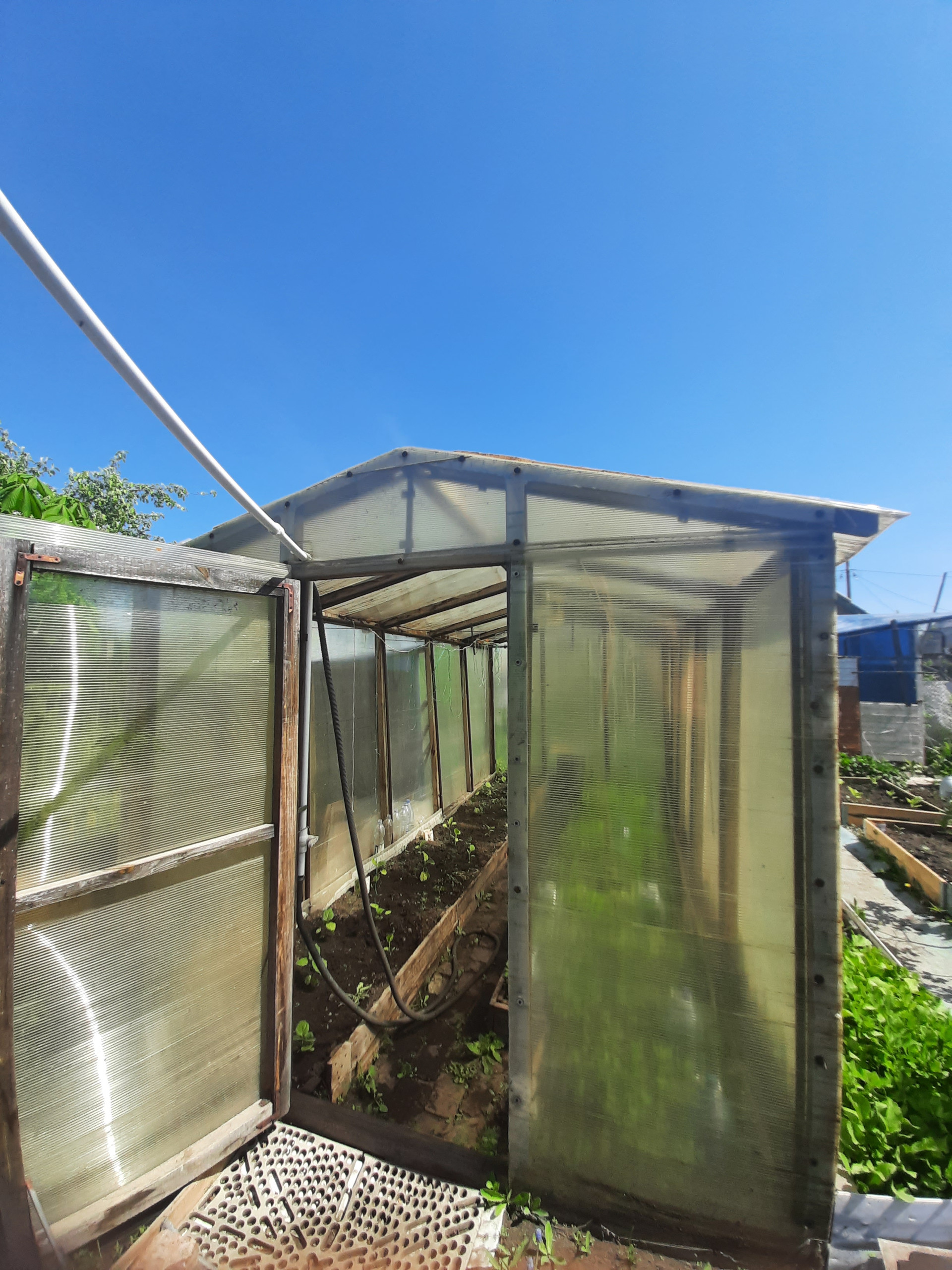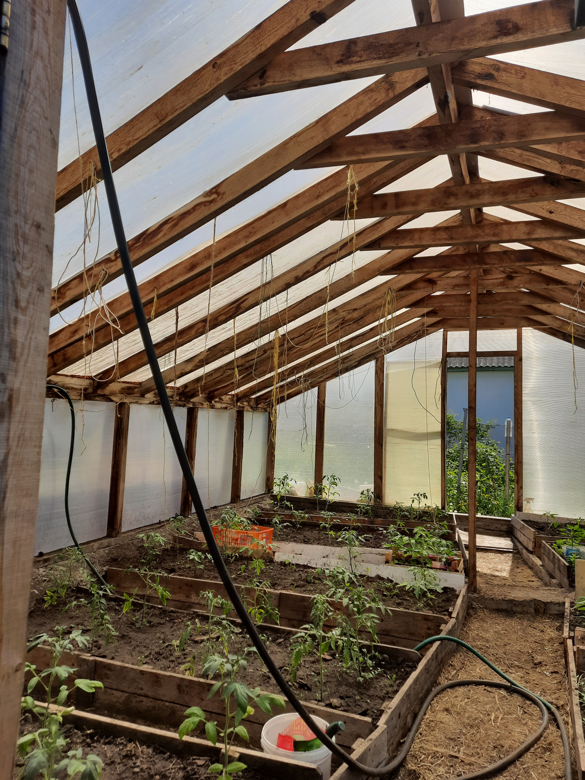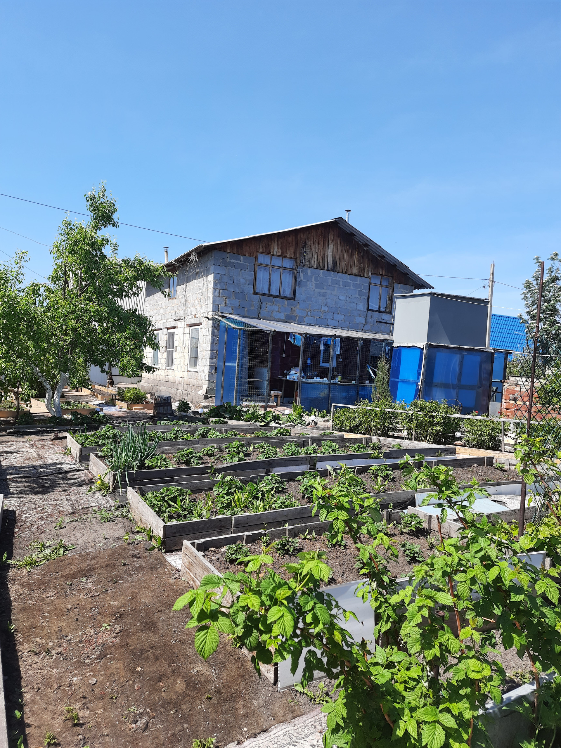 У дома есть небольшой мангальный дворик. Летом вид живописный и не хочется уезжать в город, можно остаться жить и наслаждаться. На участке 3 скважины, одна из которых прямо под домом, вода своя, поливы не зависят от графика подачи воды. Также есть бак для наполнения водой, всегда есть запас. Две теплицы для выращивания теплолюбивых культур, с каркасной деревянной основой, на улице есть отличный, уютный туалет.