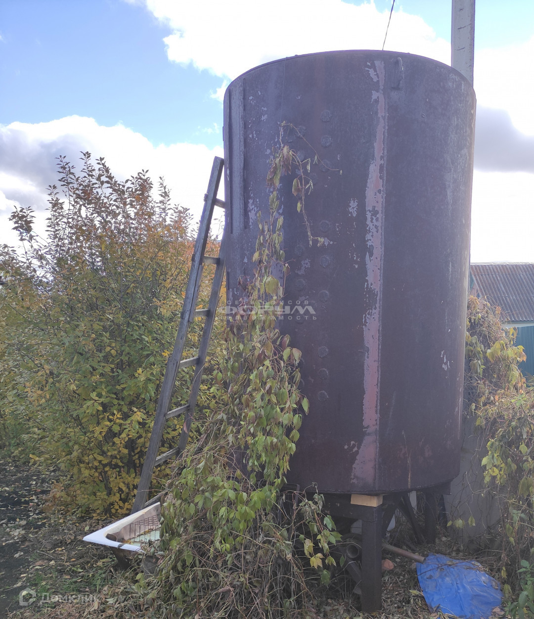 - Металлический бак 3 куба на метал подставке высотой 2,5 метра