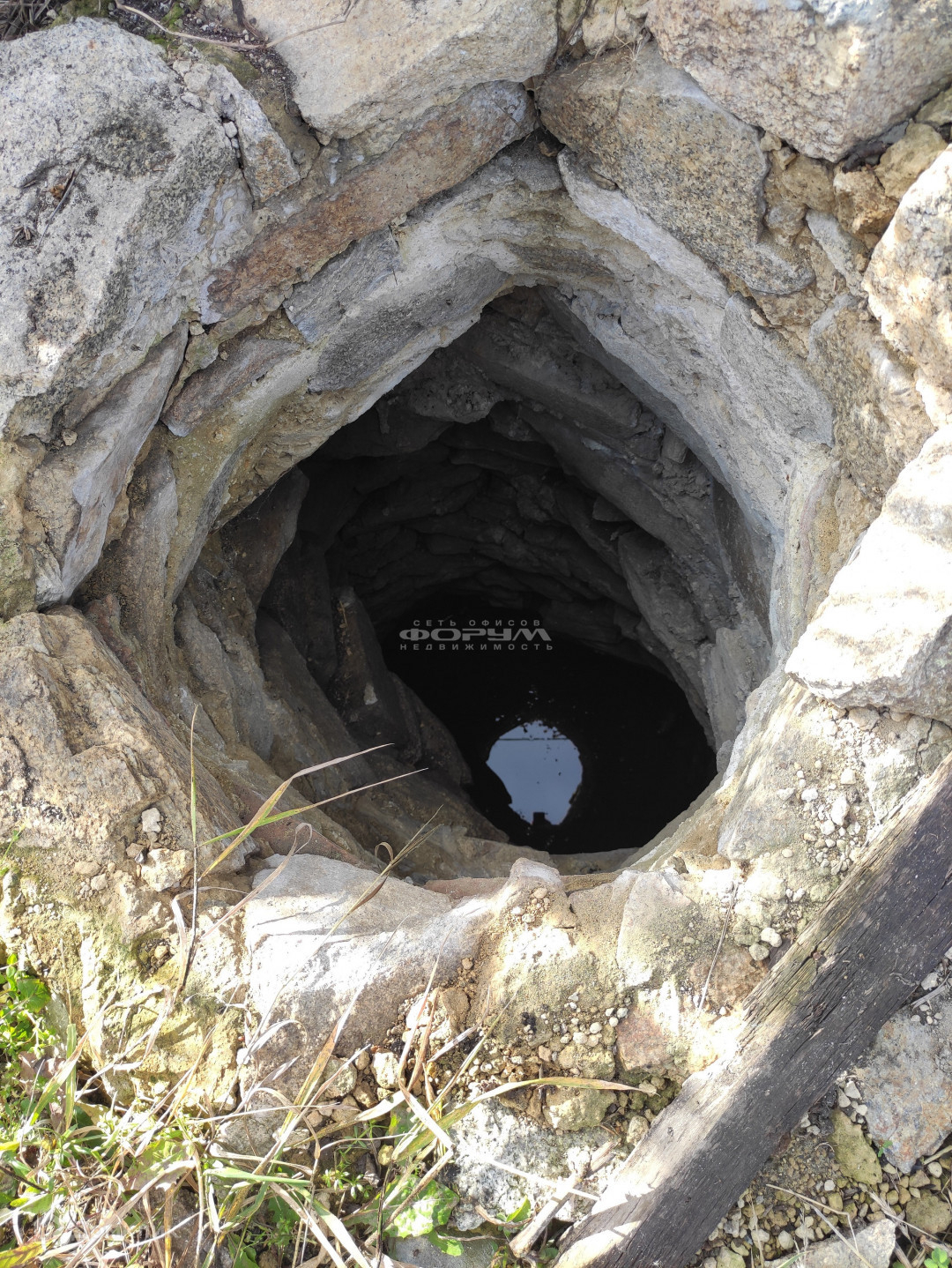 Деревенский глубокий колодец с питьевой водой (более 100 лет) выложен внутри естественным камнем.