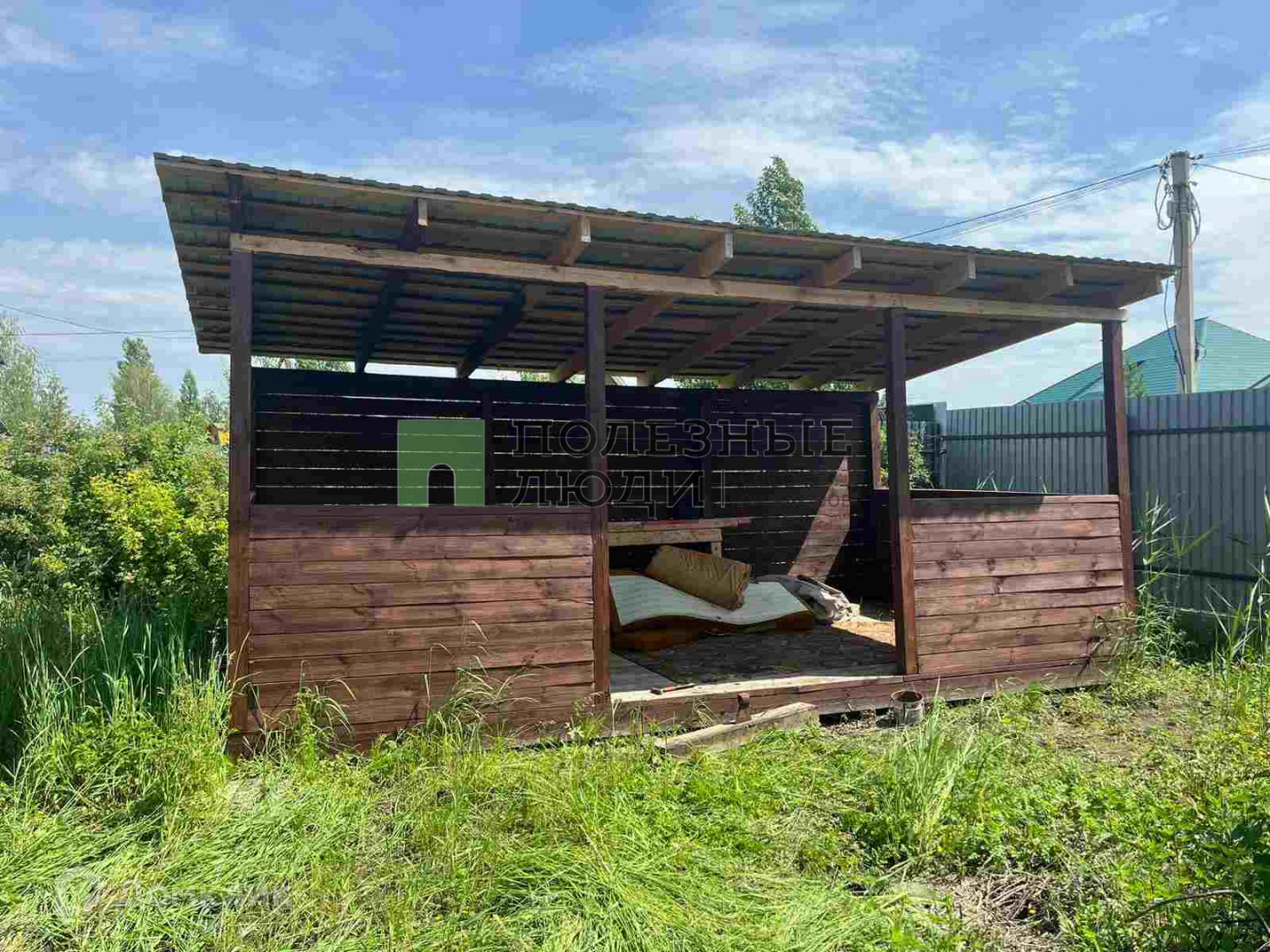 Участок огорожен профнастилом.