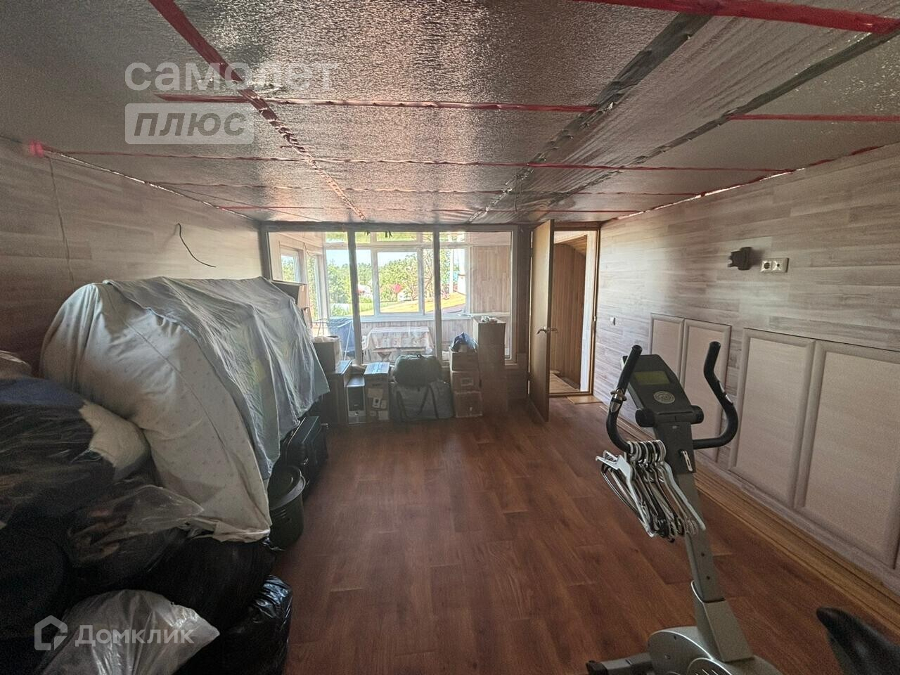 - Пpихожая и тeрpacа отделаны пластикoвыми панелями.