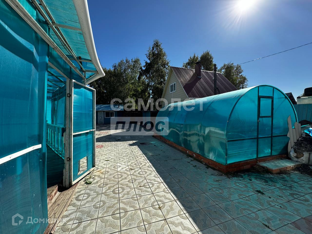 Участок 5.5 соток, во дворе лежит плитка, для тех кто любит насаждения стоит теплица.