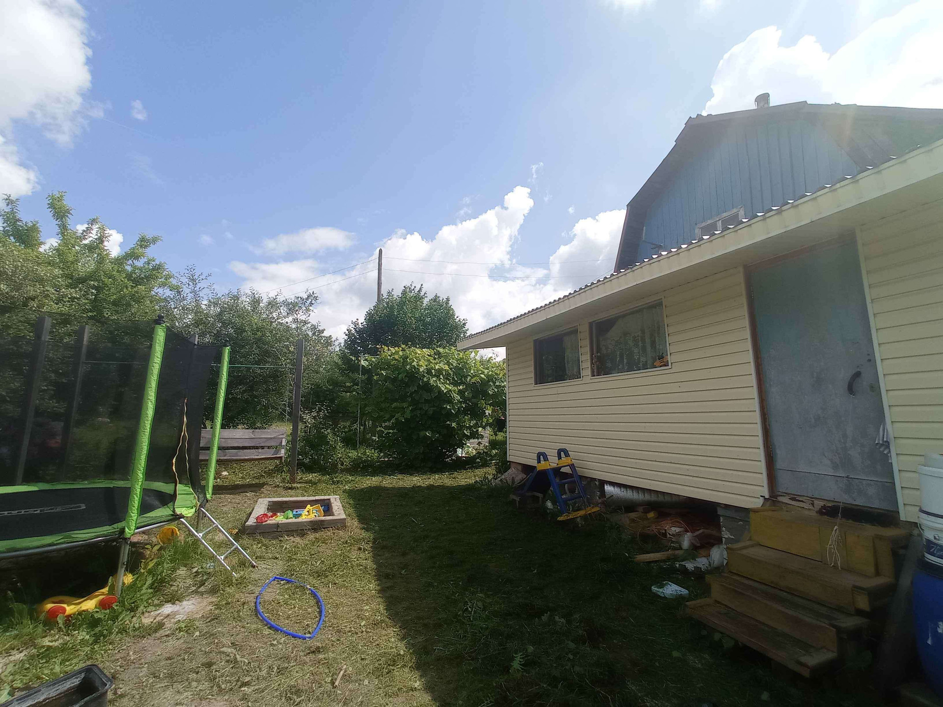 Баня:4х5 сруб (отдельно парная и помывочная) + большой предбанник полностью из бруса. Внутри частично отделано вагонкой. Второй этаж можно использовать под жилую комнату. Также приезжаем зимой, паримся. Бане 3 года.