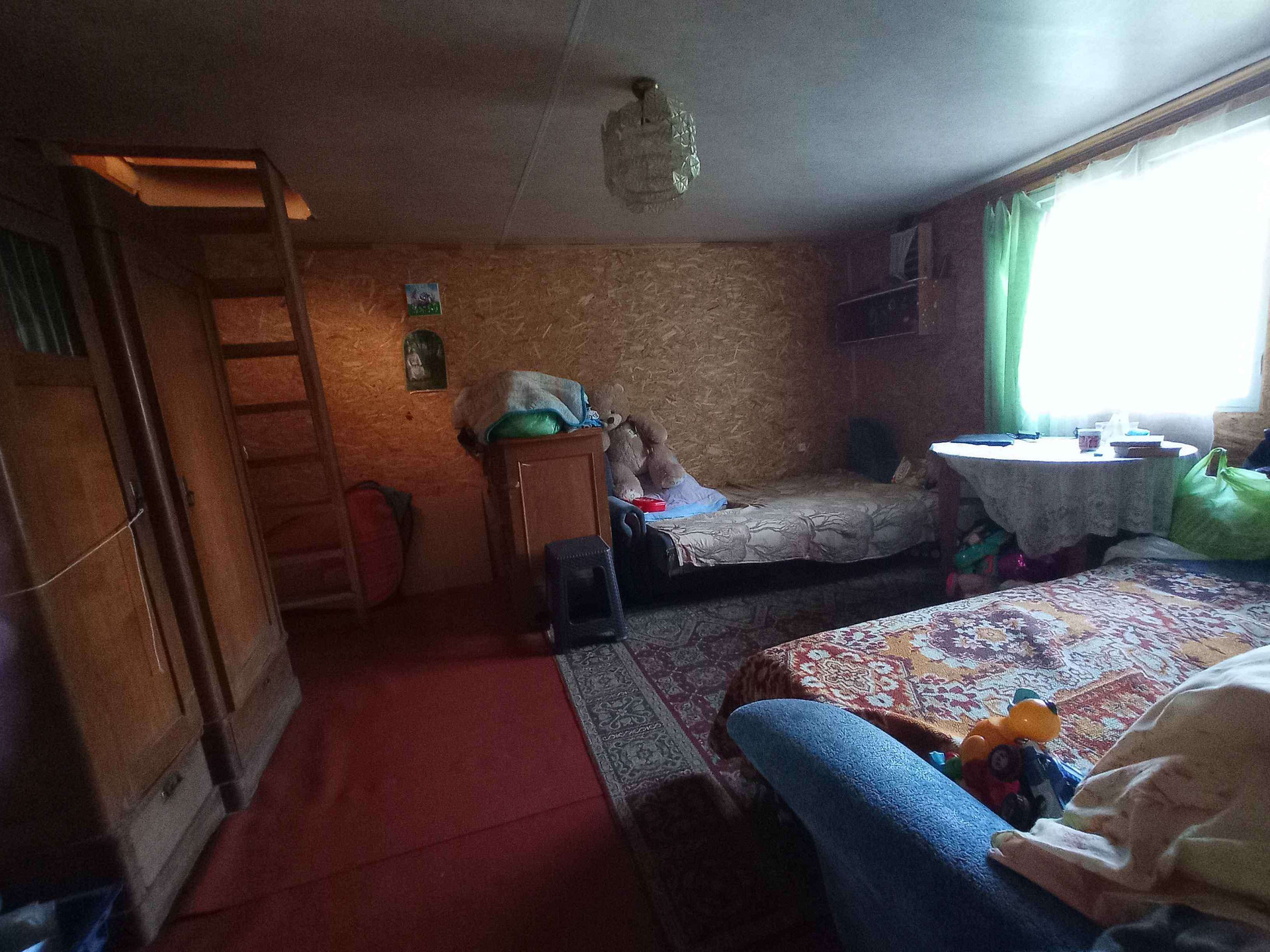 Дача (3 комнаты+кухня) : дом 1 этаж кирпич (4х5), внутри обито картоном, поверх картона ОСБ, потолок отделан пластиковыми панелями.Второй этаж мансарда, обито картоном+ обои, потолок отделан пластиковыми панелями.Фундамент жб блоки в 2 ряда. В доме кирпичная печь на 2 этажа. Приезжаем зимой на выходные, топим-тепло. 2 больших пристроя один под комнату, другой под кухню с кладовой (ОСБ).