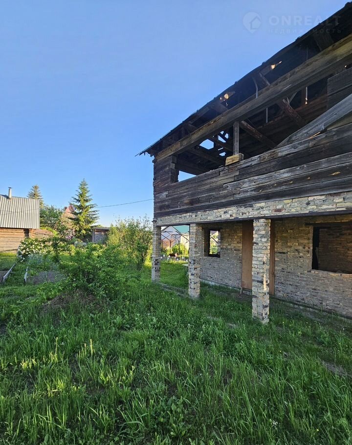 Дом недоcтpоeнный (8*6), ленточный фундамент, первый этаж из кирпича, второй - из бруса. На 1-ом этаже планировался гараж и столовая, на 2-ом спальни, (3-ий - мансарда).
