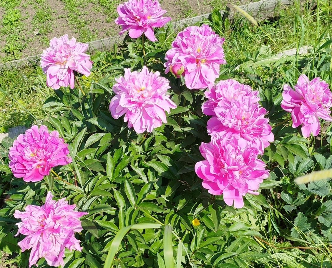 Цветник: пионы, спирея, лилейник.