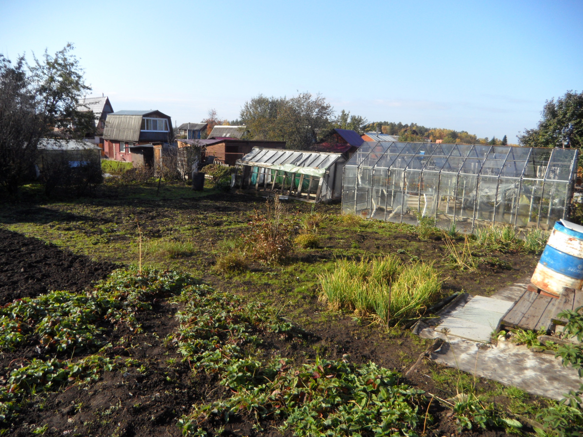 На участке баня, теплица, парник.