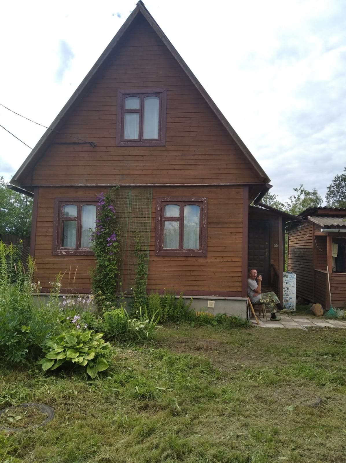 Участок на территории СНТ. Уютный небольшой домик. На 1ом этаже 2 комнаты спальни с диванами, кушеткой и шкафами, в коридоре стол и сервант, небольшая кладовка для инструментов. 2ой этаж большая комната. Рядом с домом стоит бытовка - летняя кухня с холодильником, электрической плитой и микроволновкой. Санузел отдельностоящий, с душевой кабиной и боулером. Скважина с технической водой.