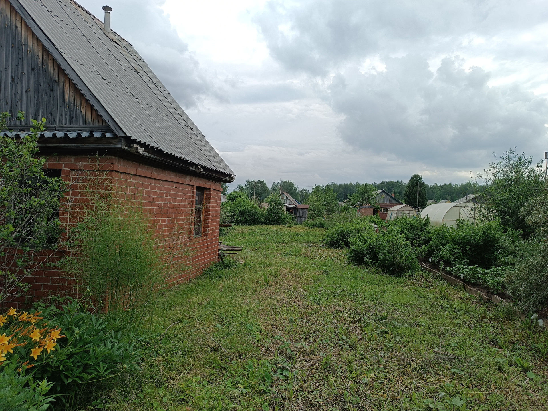 На участке земля чернозём. Есть плодовые деревья и кустарники: яблоня, Алыча, вишня, смородина красная, смородина белая, малина