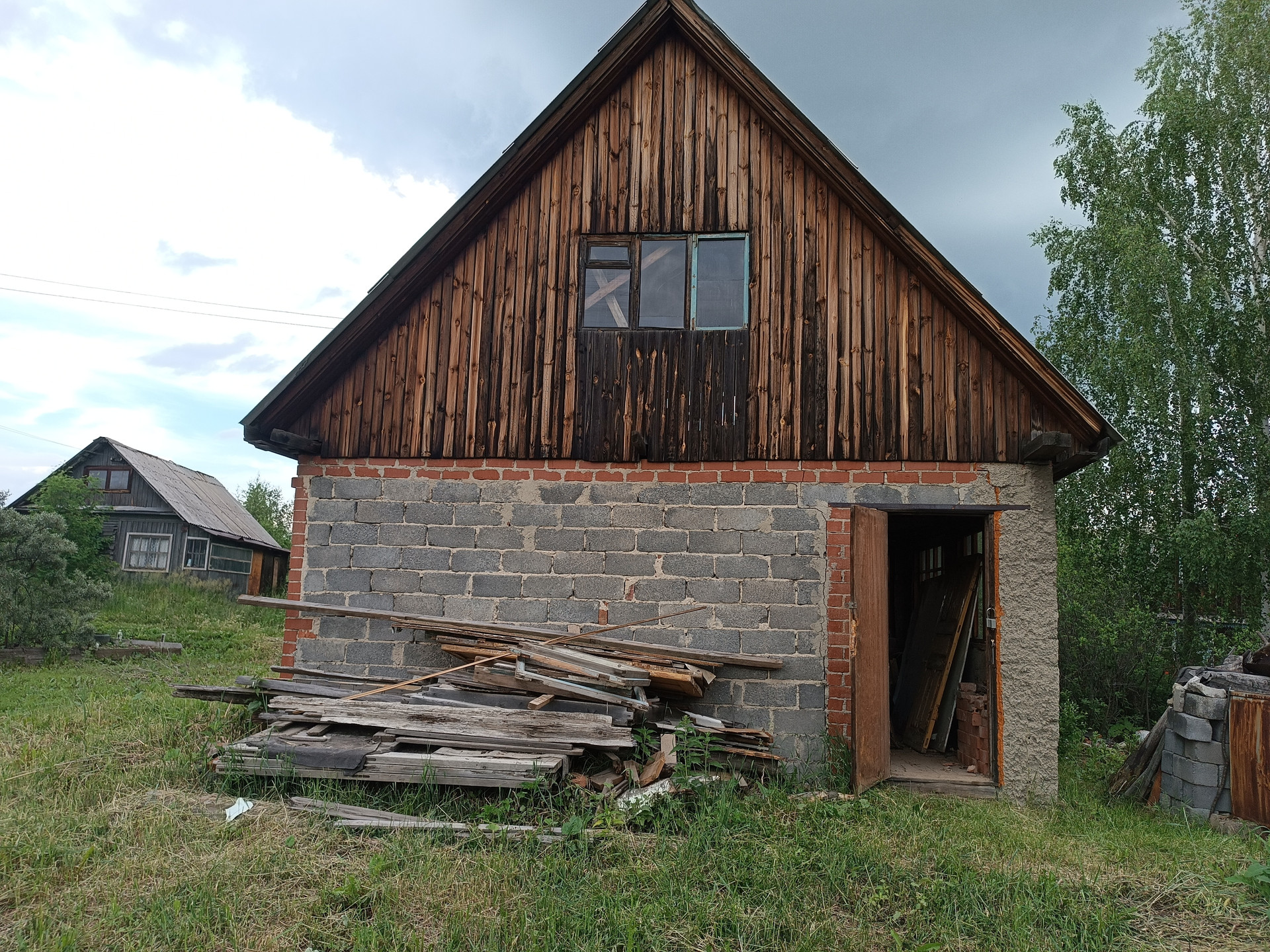 6 соток, но которых располагается двухэтажный дом 6*6, 50 кв. из шлакоблока 2010 года постройки, отделанный кирпичом.