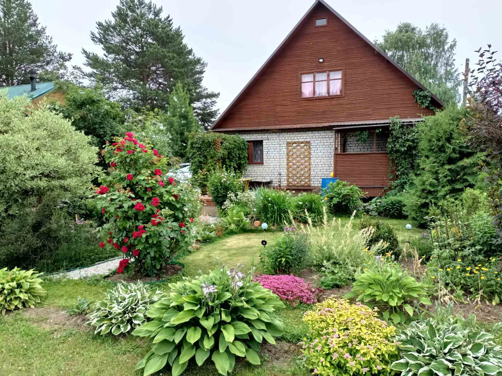 На участке есть баня, теплица, небольшая огородная зона. Посажено много декаративных растений, цветов, кустарников.
