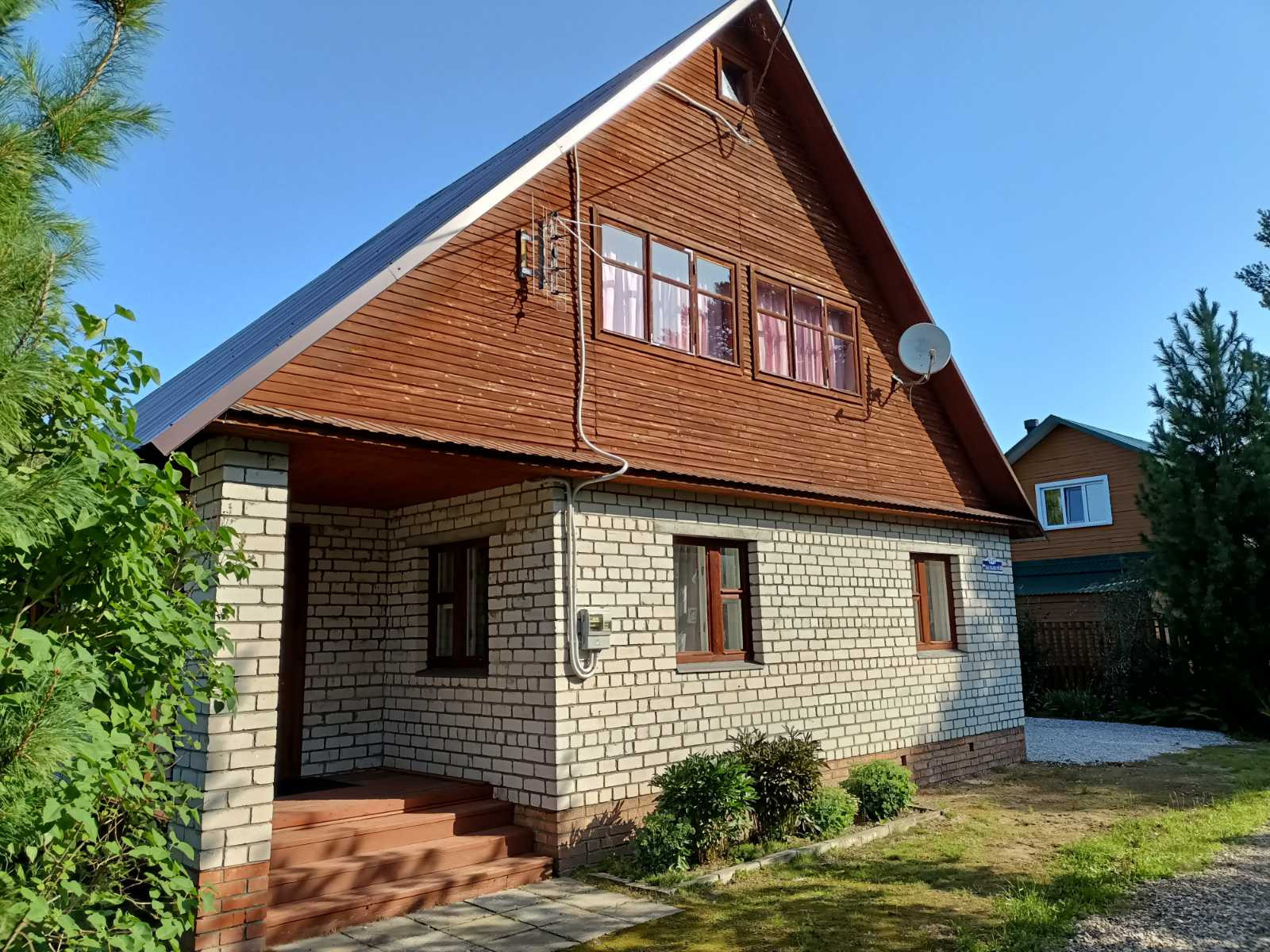 Продается кирпичный дом с мансардой площадью 45 кв.м на земельным участком 6 соток в СНТ № 73 Пешково. Территория сада находится за шлагбаумом. До реки Кондас 7 минут ходьбы.