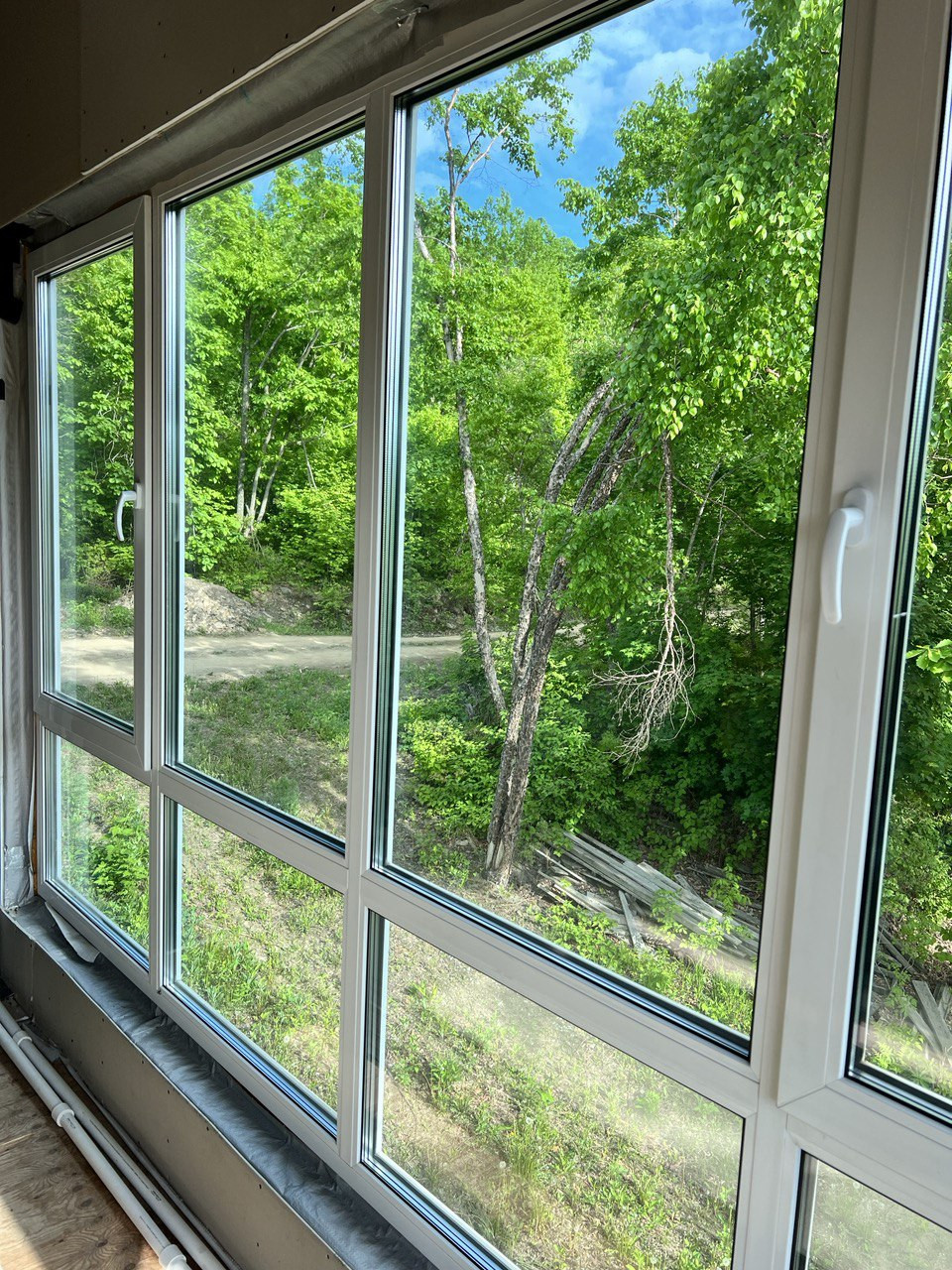 Шикарный вид из окна на лесной массив и район.