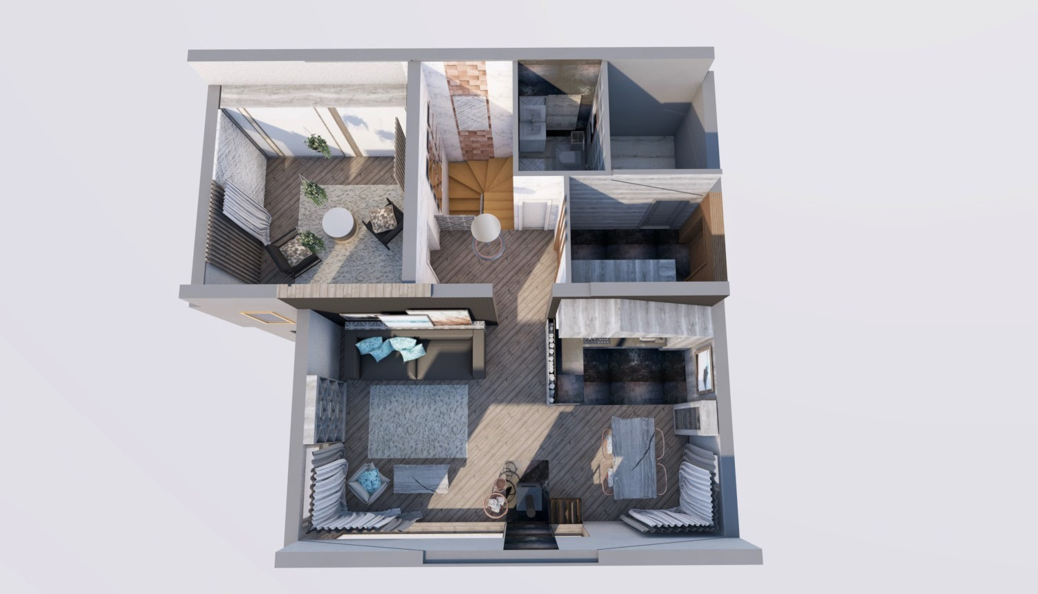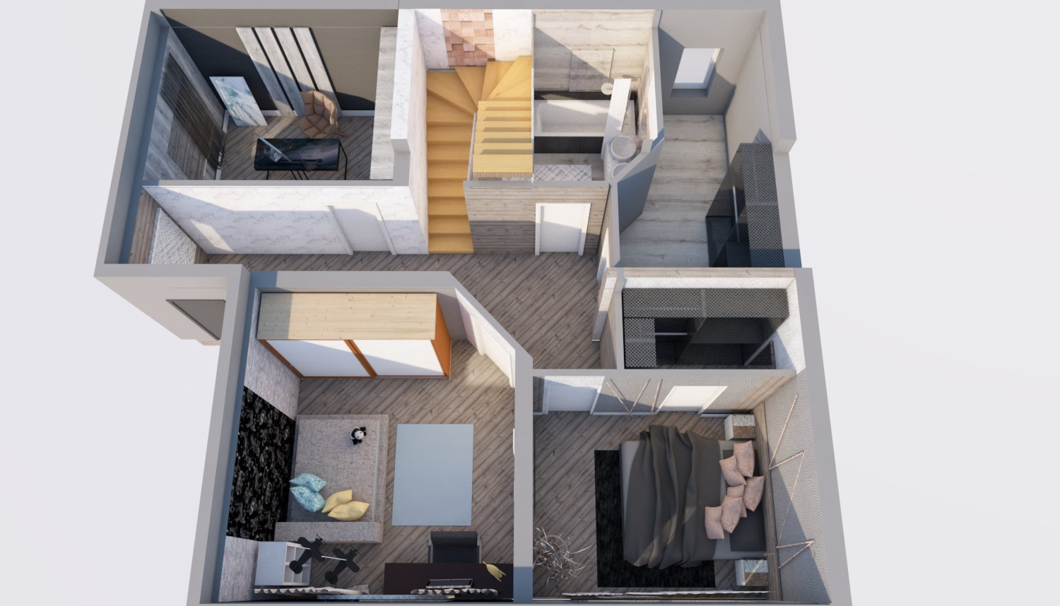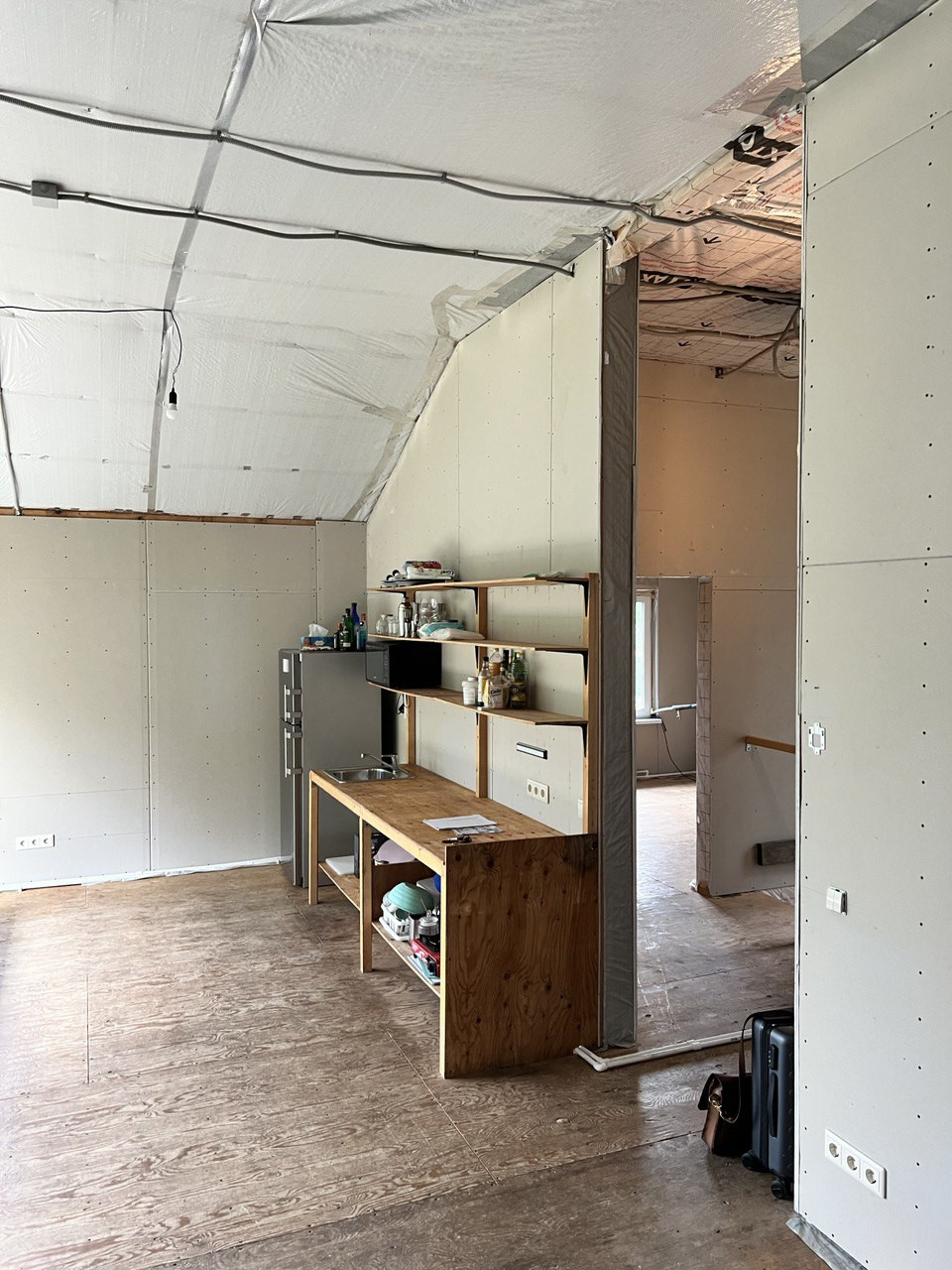 Парадный вход, кухня-гостинная на втором этаже. Максимальная высота потолка 3,5м.