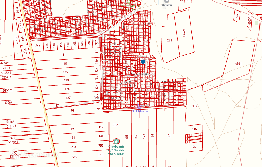 Участок ровный, правильной форма. Все коммуникации по границе. Многие соседи постоянно: товарищество существует давно и хорошо обжито.