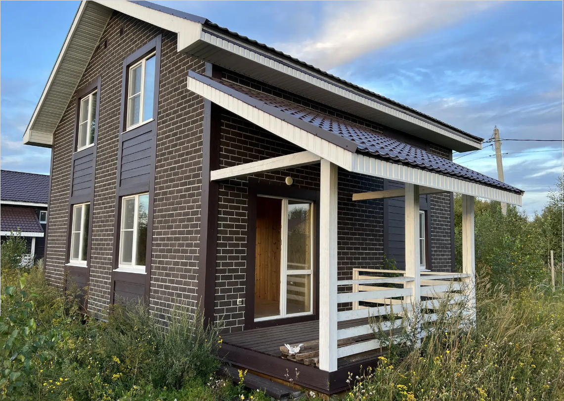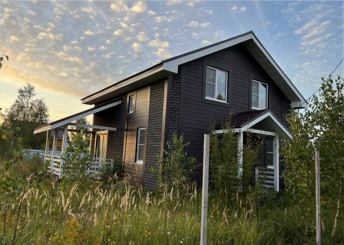 В стоимость дома входит наружная отделка, кровля –  с водосточной системой; качественная входная дверь с терморазрывом; энергосберегающие окна, внутренняя предчистовая отделка, теплый пол, разводка по дому, переливной септик.