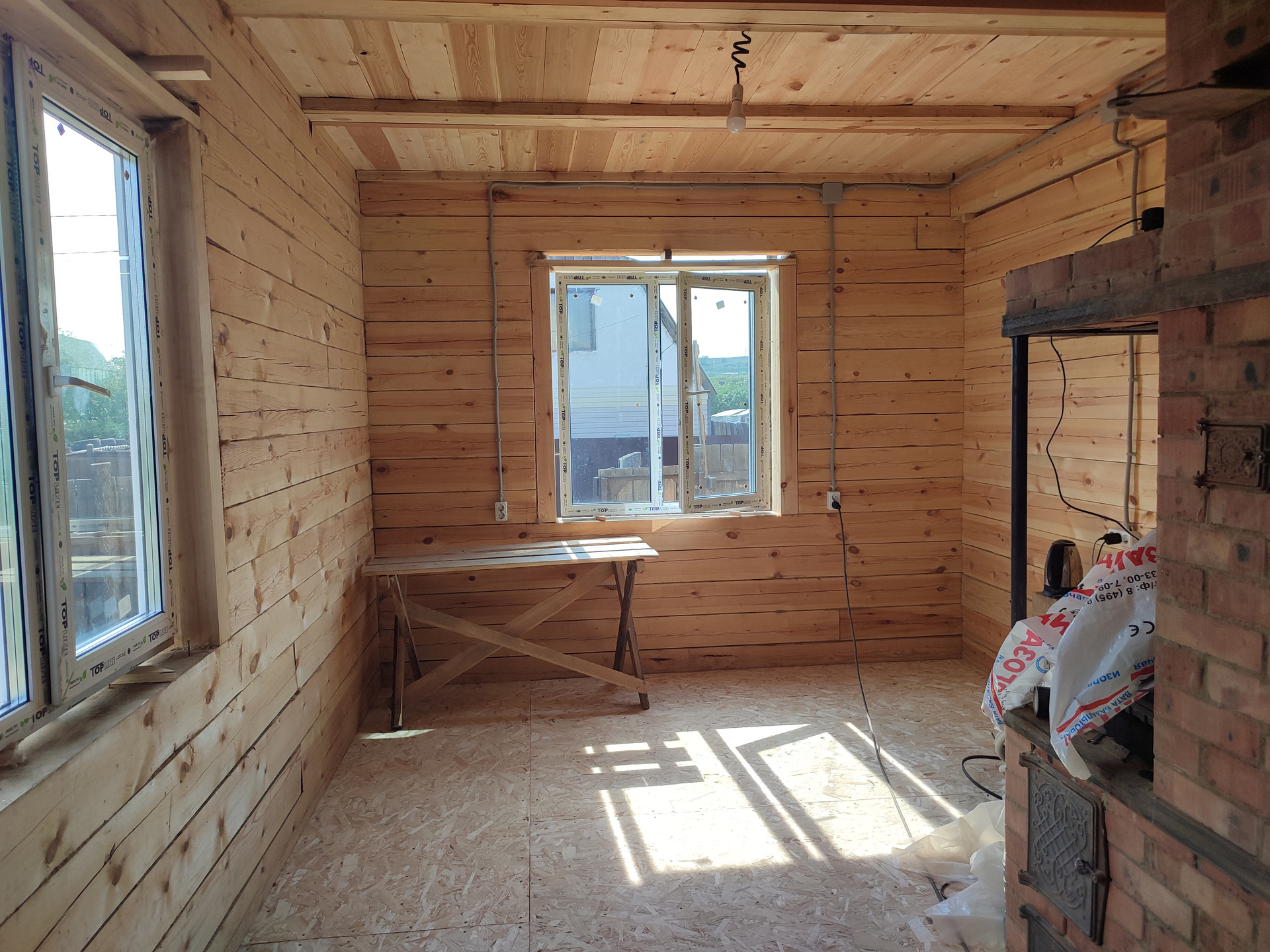 Продается новый брусовой дом в п. Восточный, 100,4 кв.м., санузел в доме, 2 этажа, отопление печное, внутри струганный, скважина 25м., выгребная яма 3 кольца, терраса.