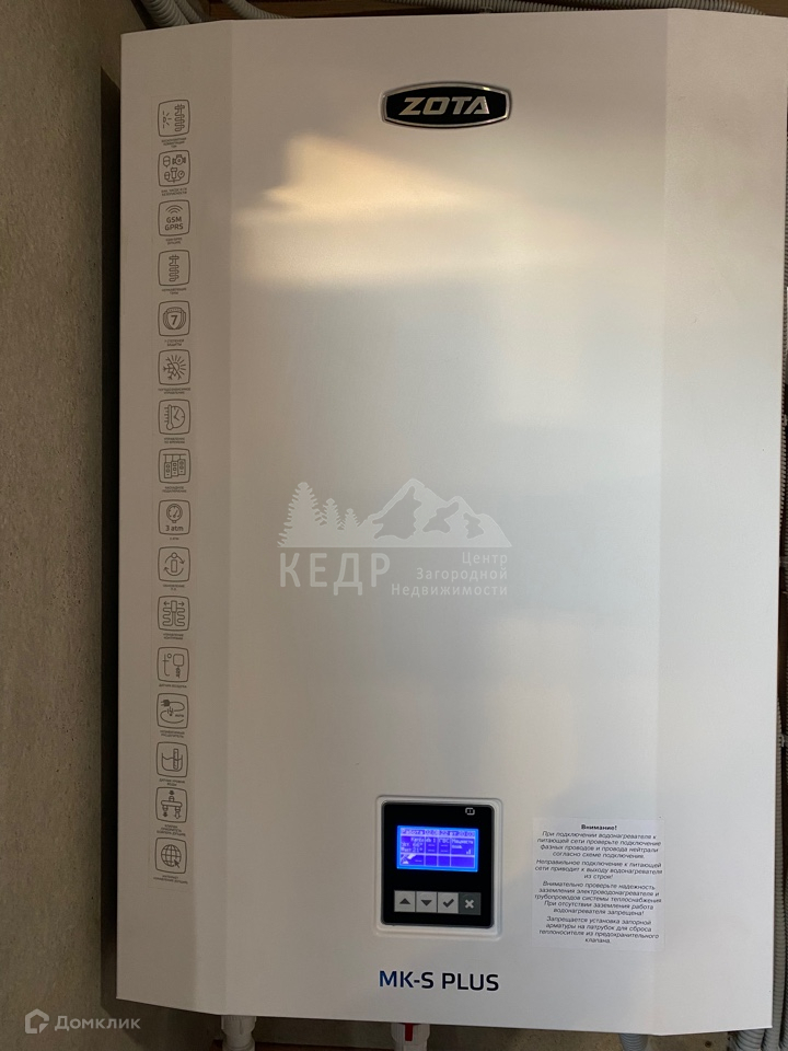 Вода - собственная Скважина 28 метров. Септик . Электричество 15 КВт.   Отопление : Во всех помещениях смонтированы радиаторы  , установлен электрокотёл Зота на 9 КВТ.