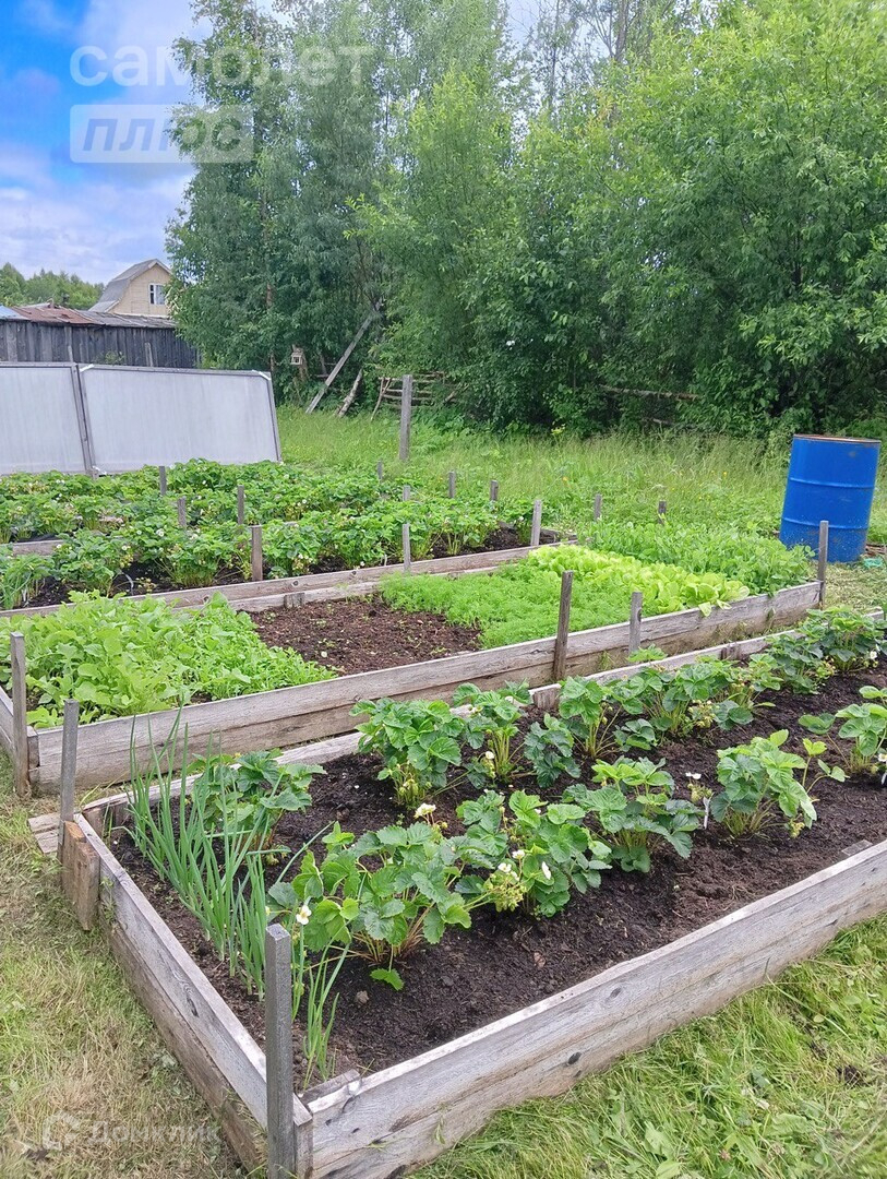 посадки клубники, фруктовых деревьев и кустов (яблоня, вишня, смородина, малина)