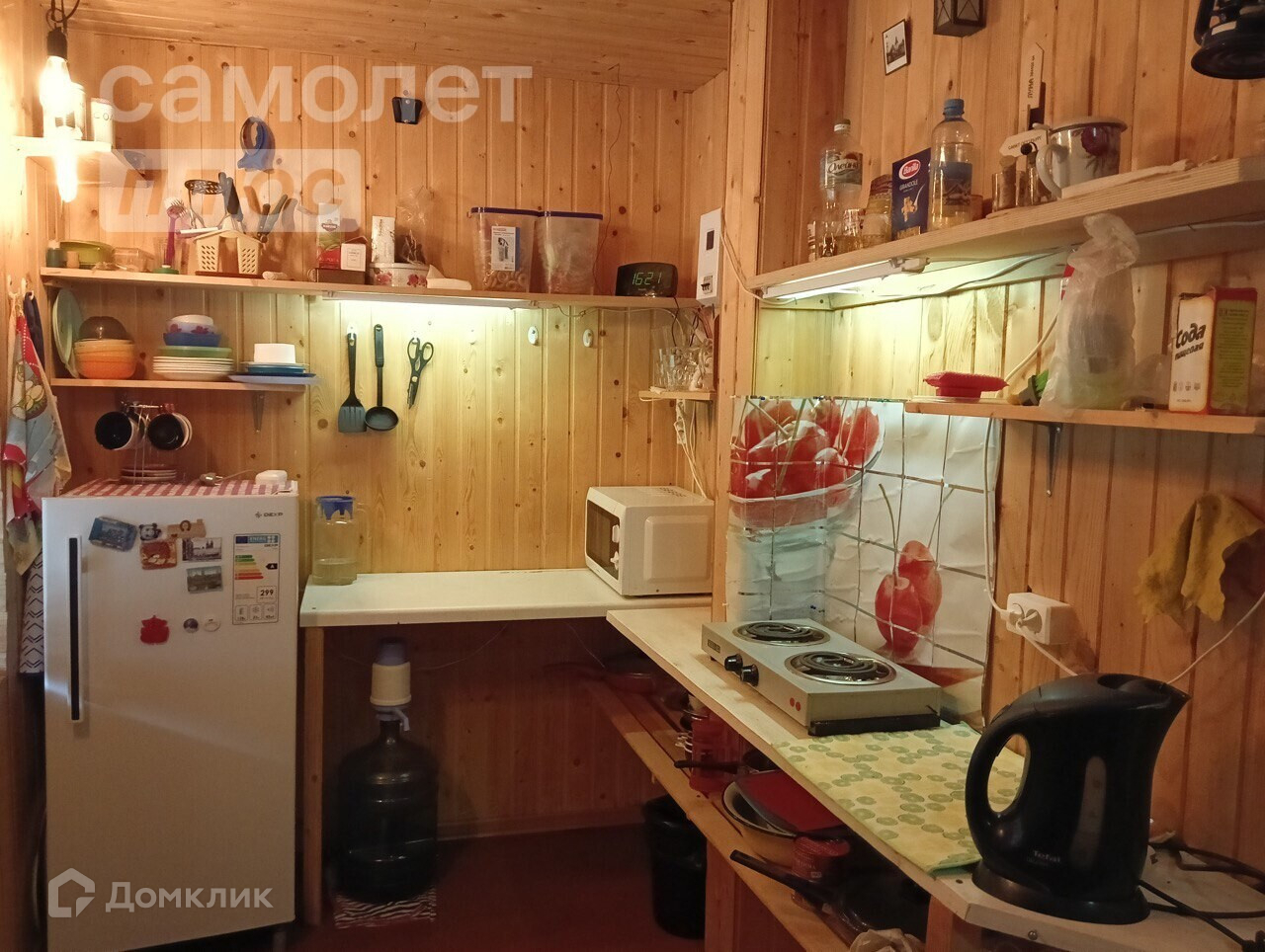 Нa первом этaжe дома расположены: металлическая печь, сауна с помывочным отделением, туалетная комната, прихожая с кухней и комната-гостинная. На втором – большая комната-спальня. На всех окнах в доме установлены стеклопакеты, что позволяет дольше сохранять тепло. Дом оборудован септиком на 5 куб. метров, вода в дом поступает через насос из колодца. Готов технический план и технический паспорт на дом, его можно будет зарегистрировать как жилой, с возможностью прописки.