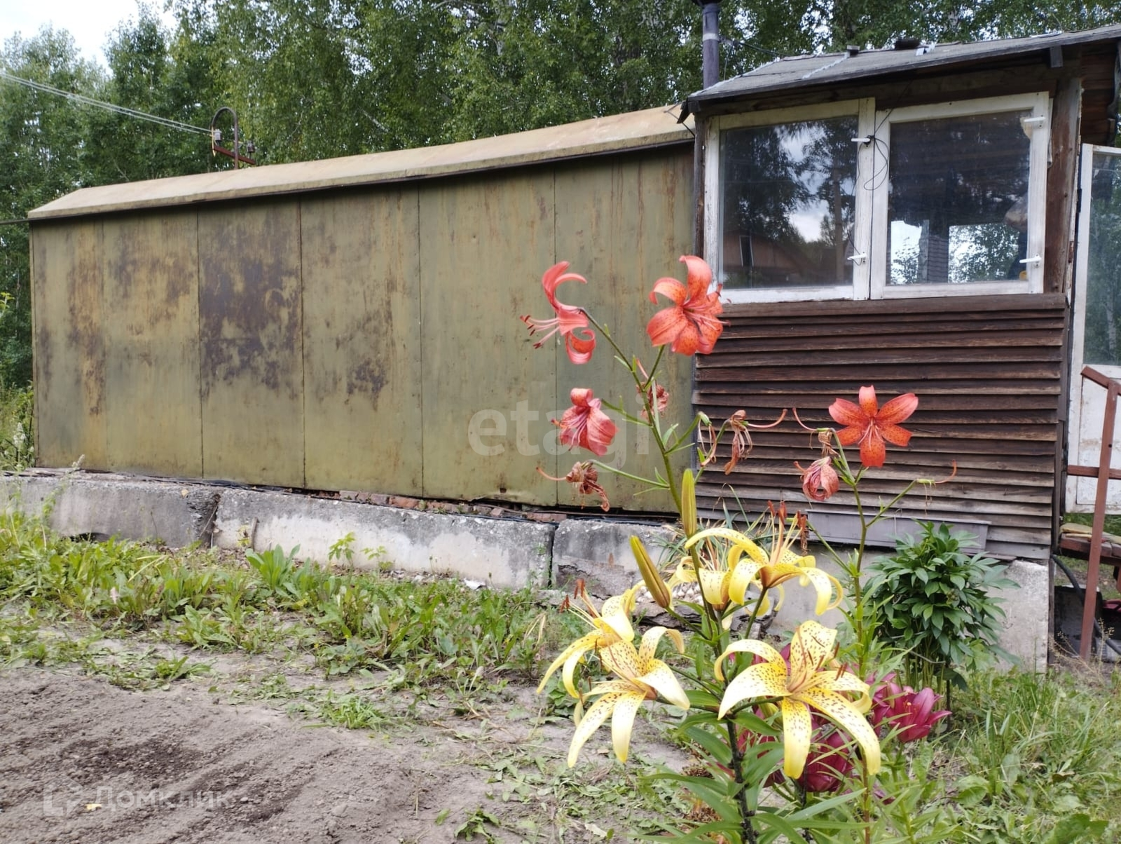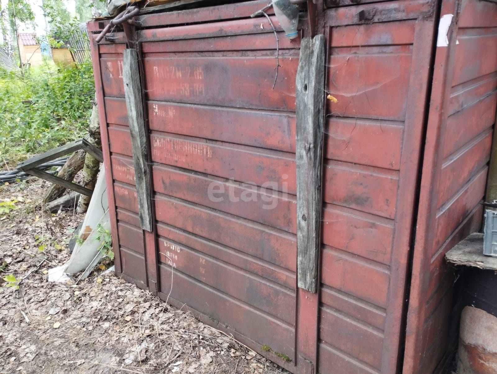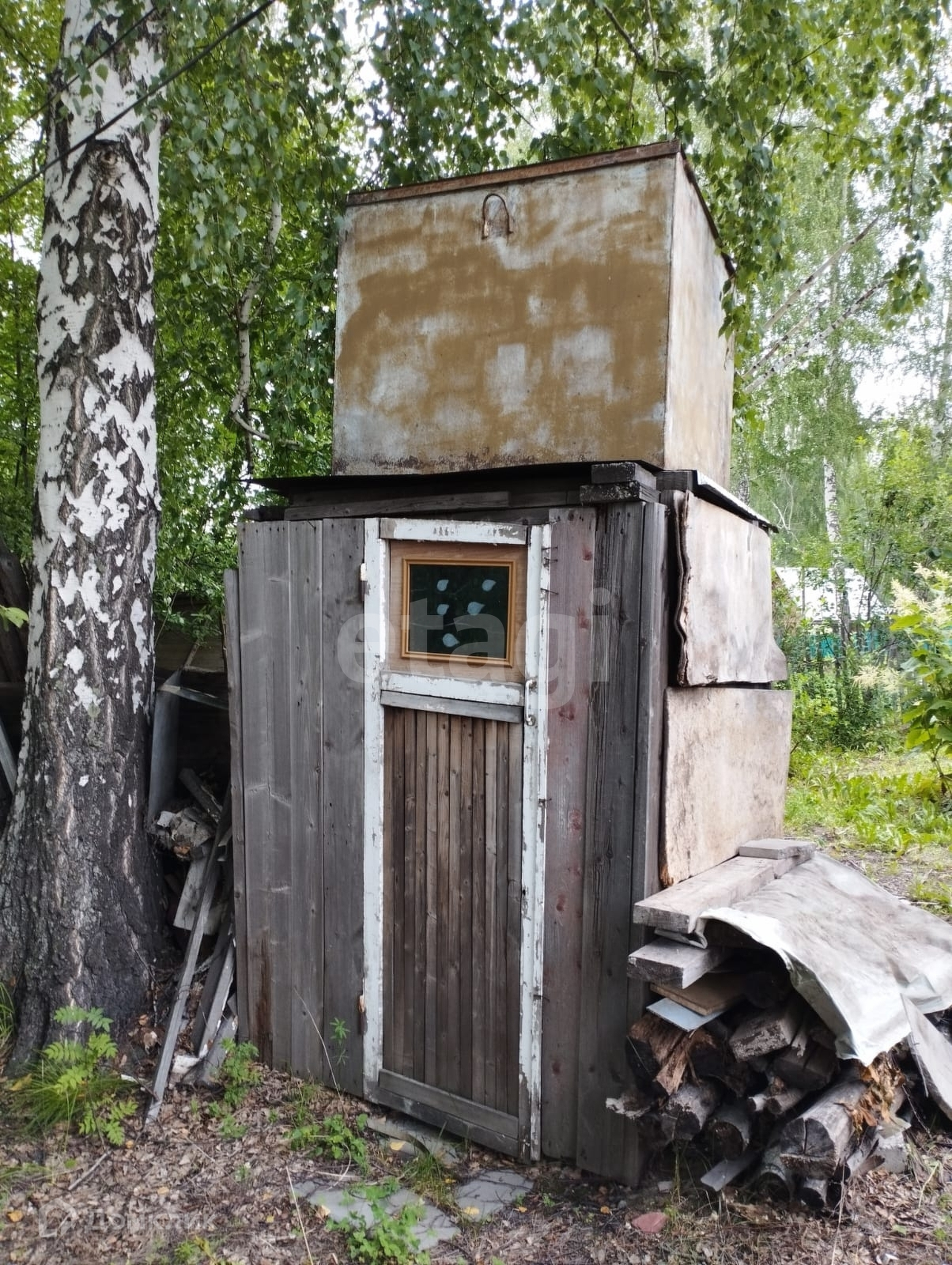На участке еще есть металлический сарай, контейнер для хранения инструмента, душ с большим баком на крыше.