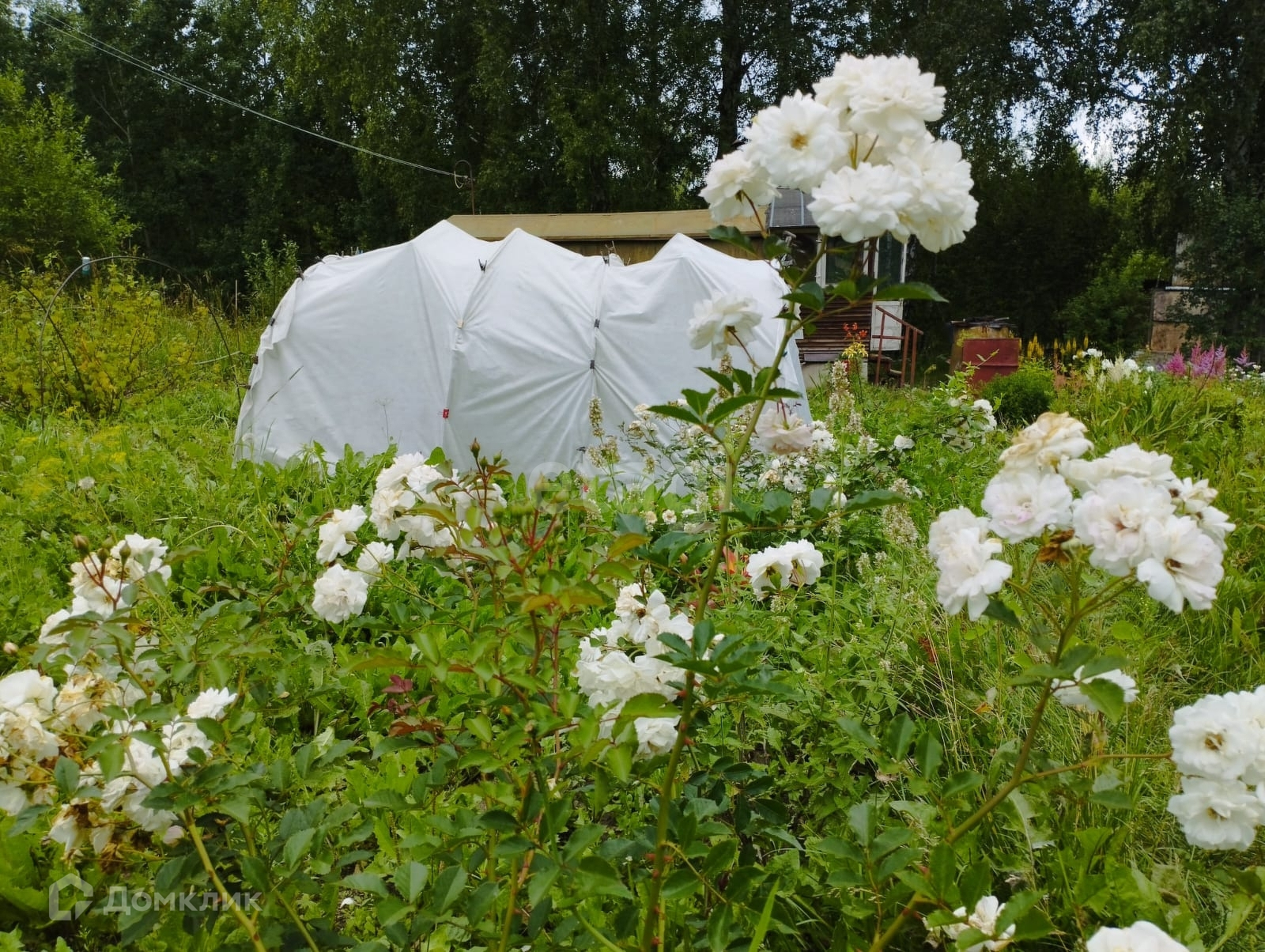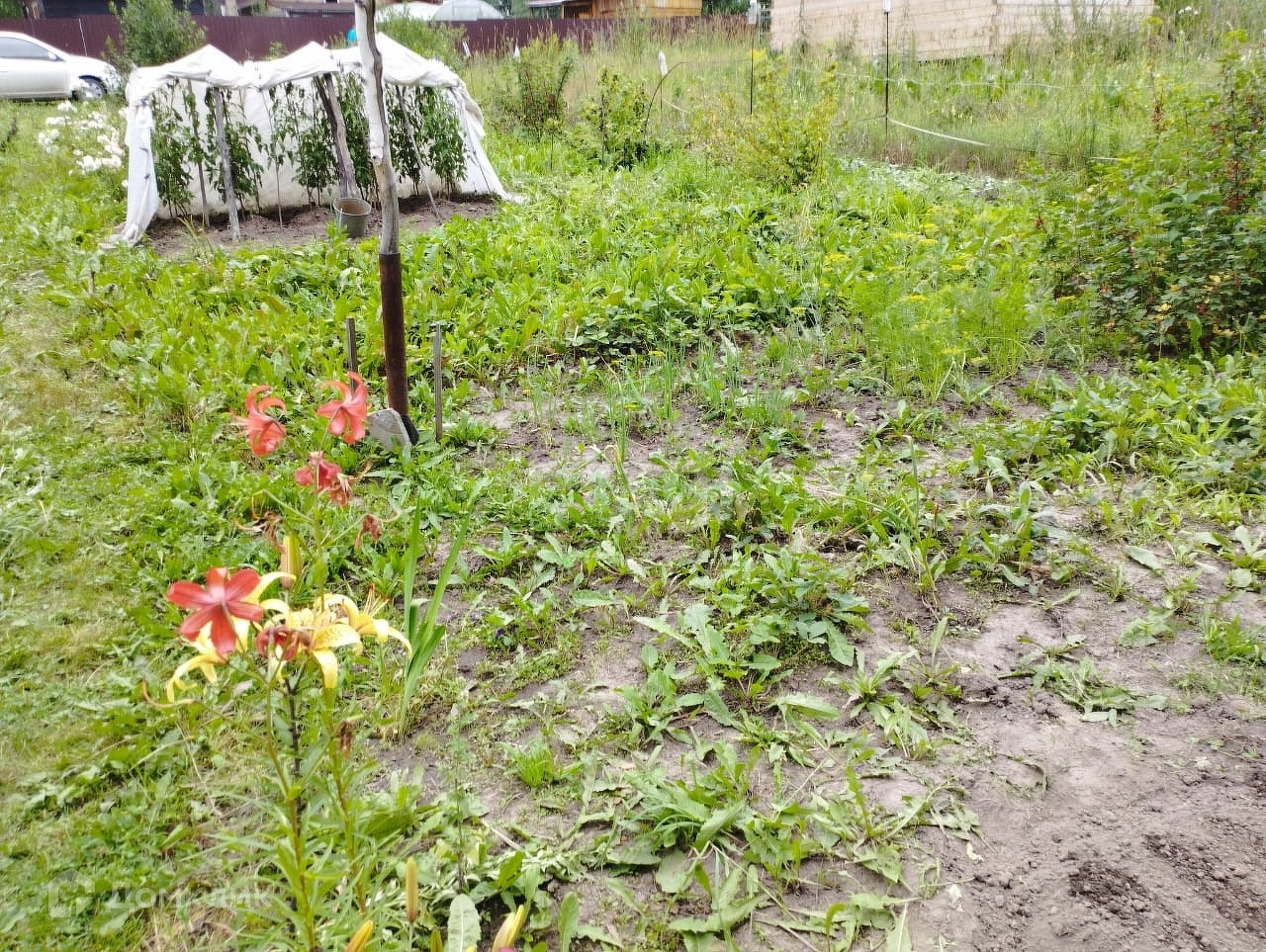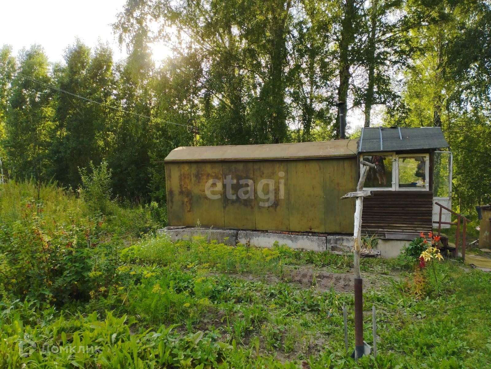 На участке еще есть металлический сарай, контейнер для хранения инструмента, душ с большим баком на крыше.