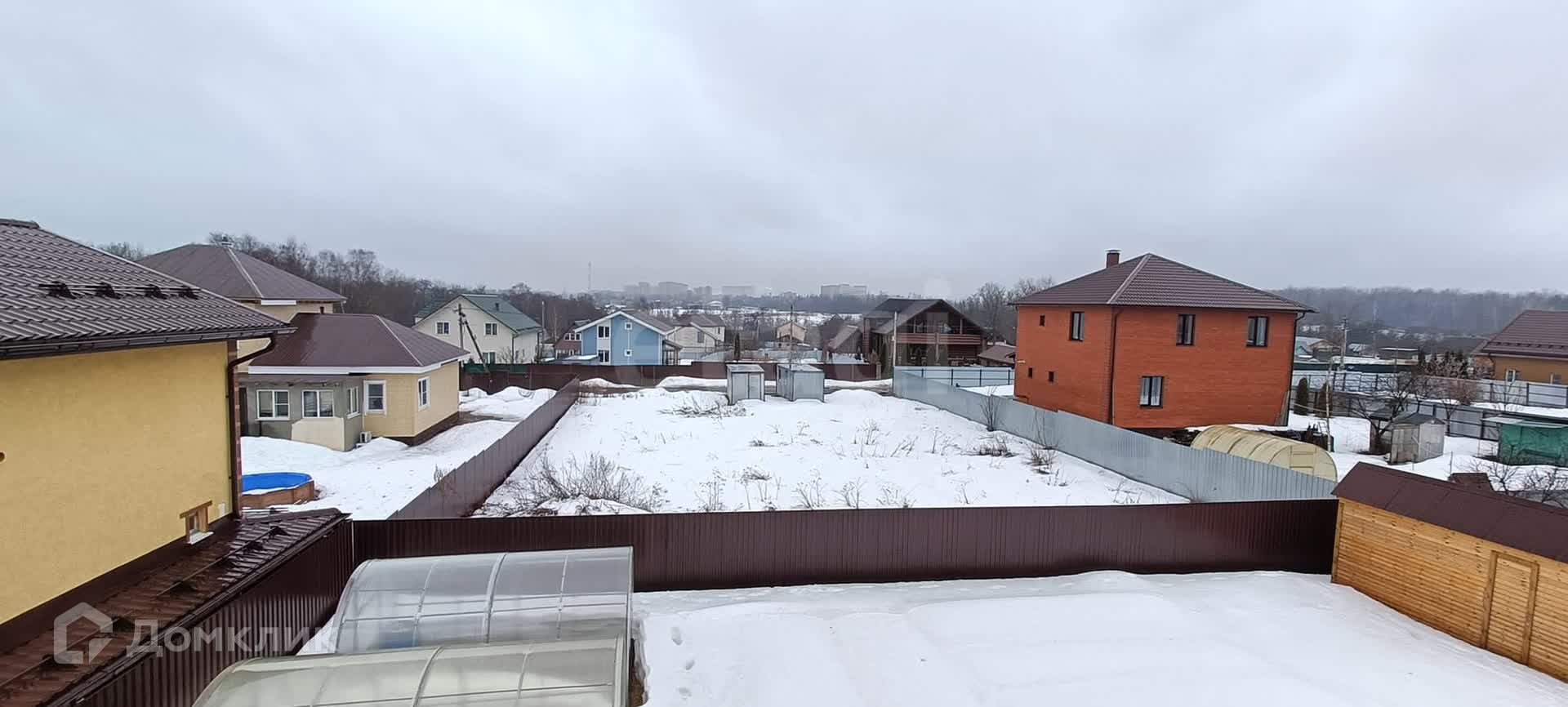 - Огорожен забором (профлист)